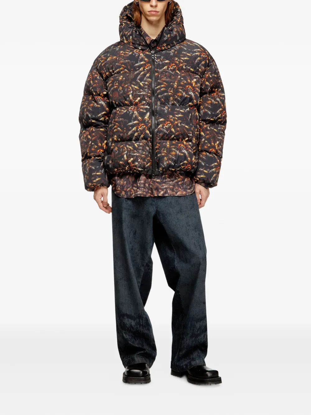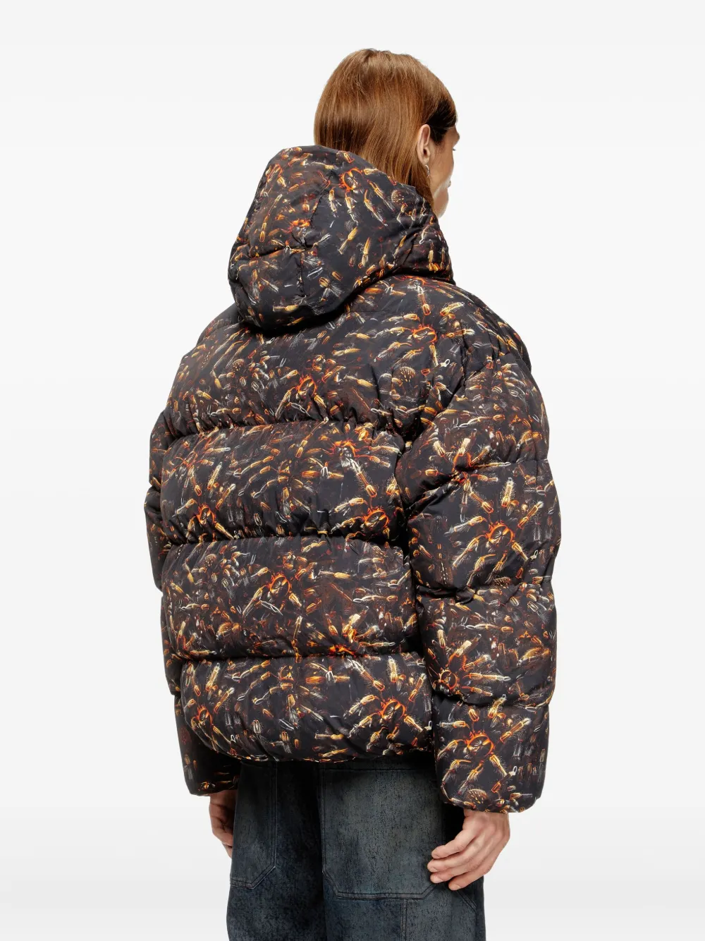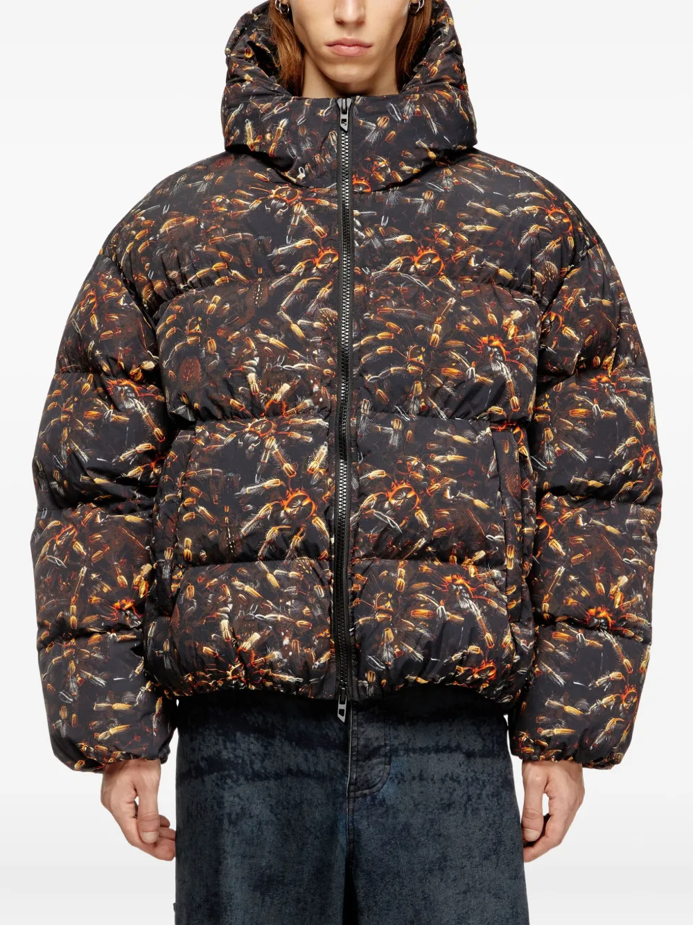 Утепленная куртка с капюшоном и принтом тарантулов DIESEL