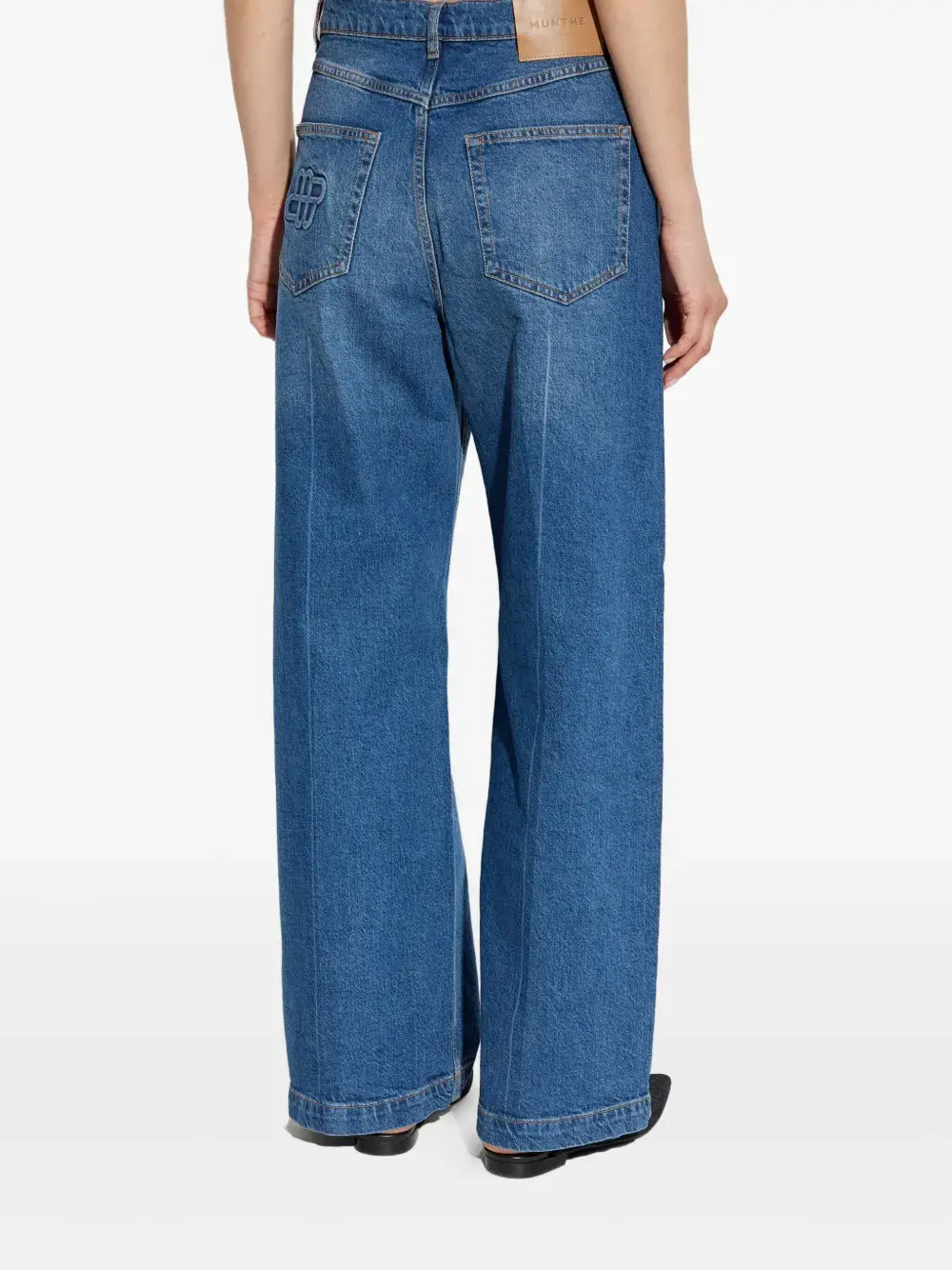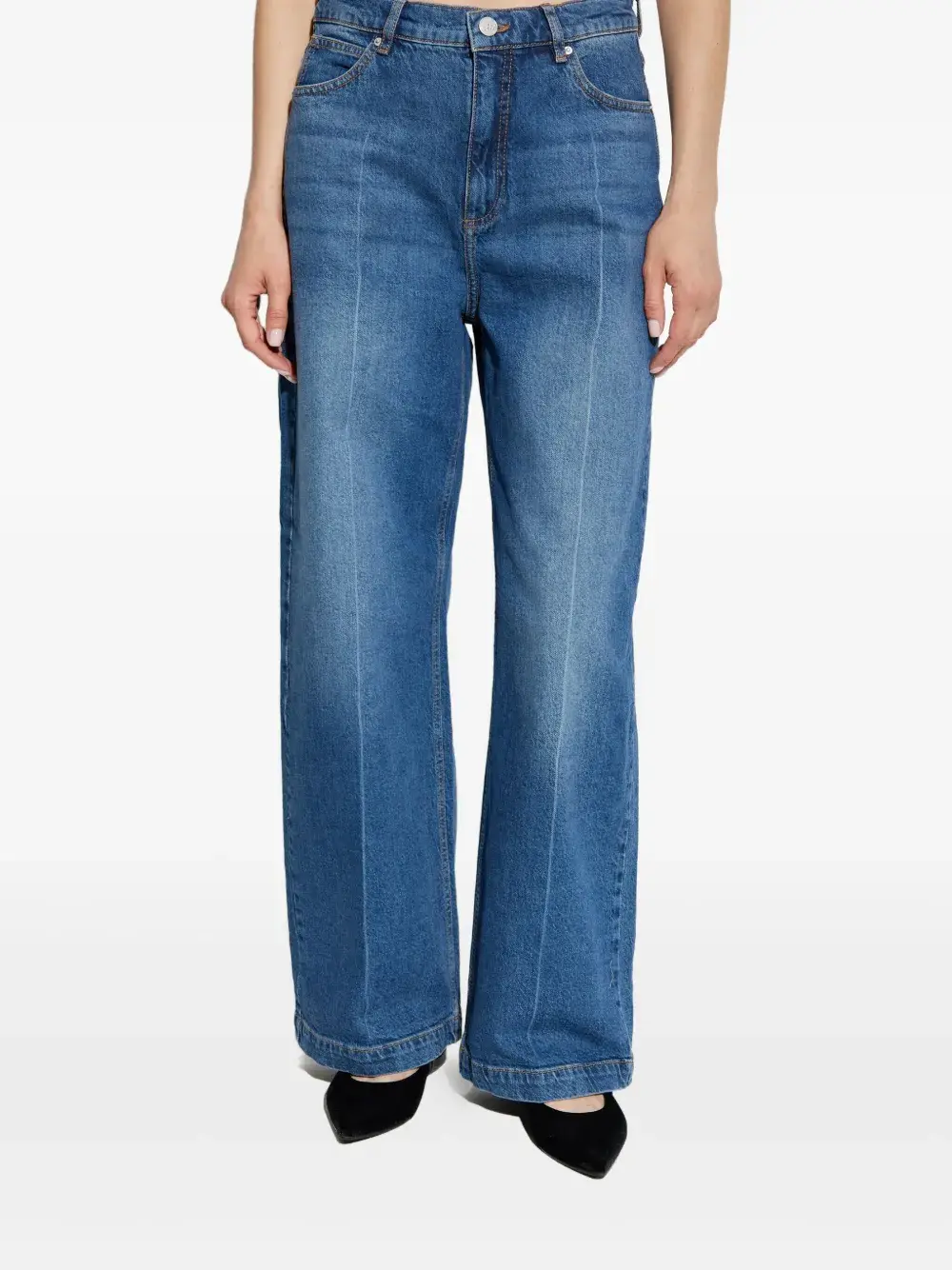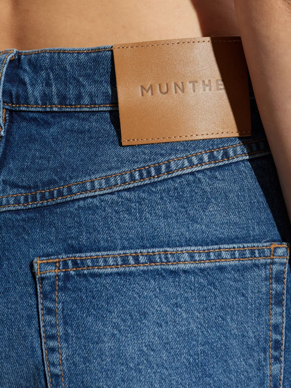 Индигово-синяя модель с пятью карманами, застежка на пуговицы спереди, контрастная строчка