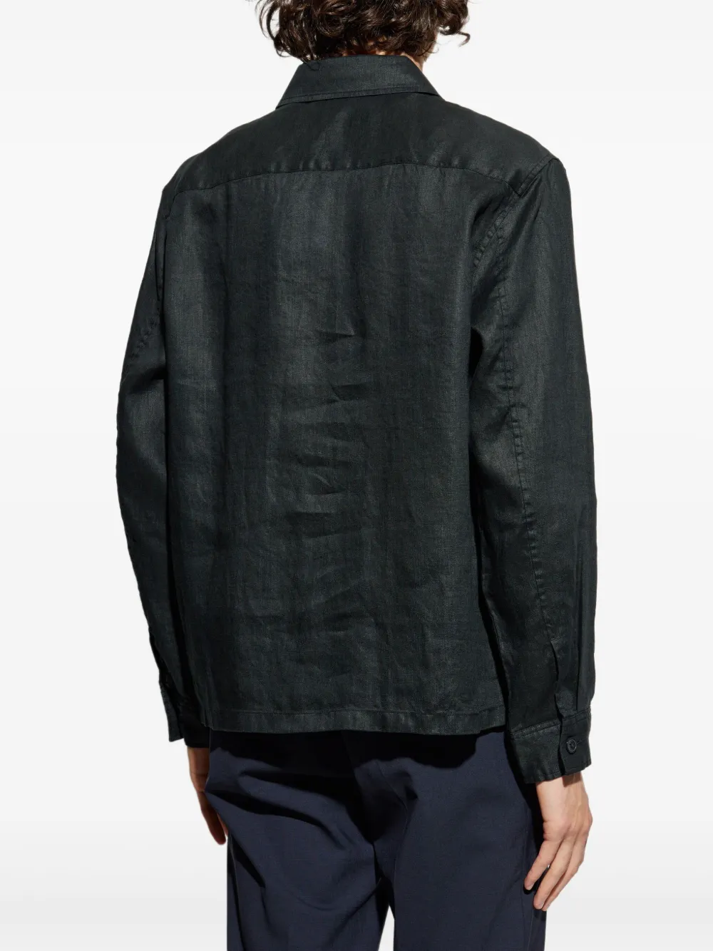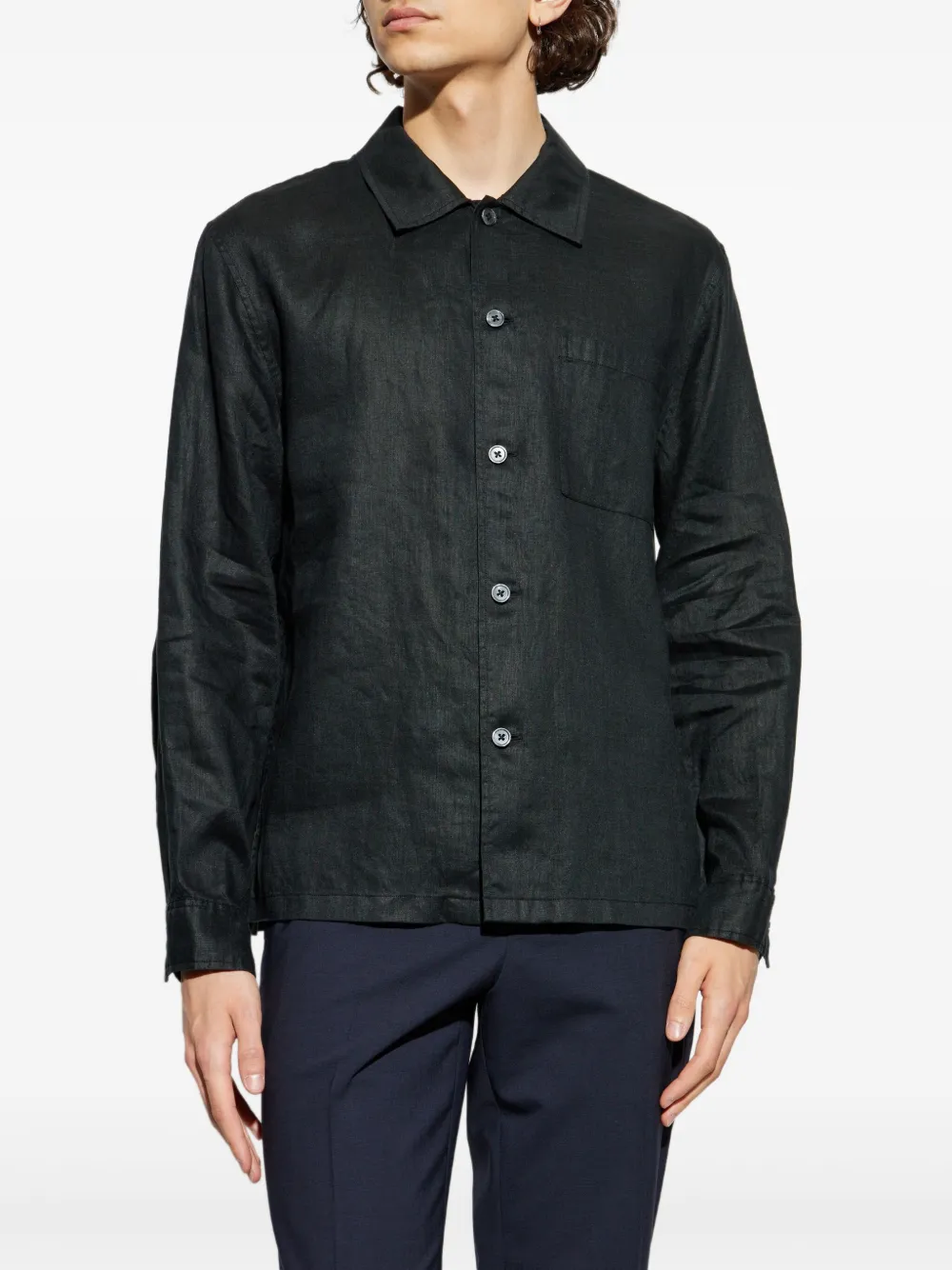 Черный классический воротник, застежка на пуговицы спереди, длинные рукава, накладной нагрудный карман
