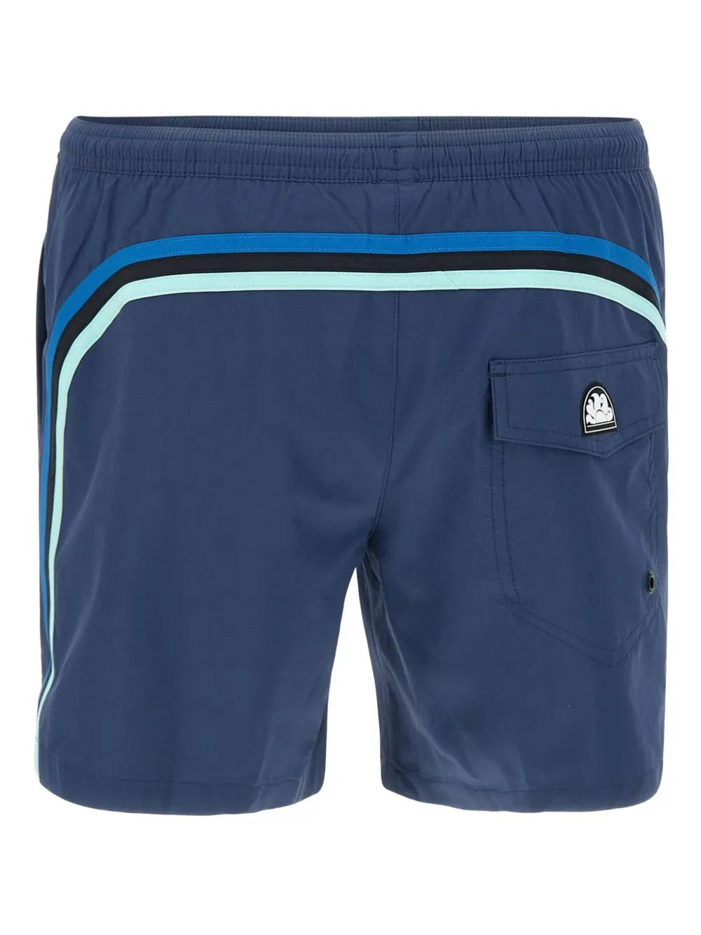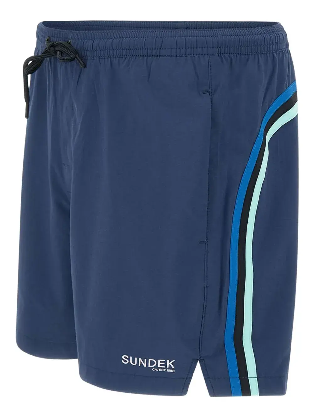 Эластичный пояс темно-синего цвета со шнурком, контрастные полосы по бокам, отделка логотипом. Обязательно примеряйте купальники поверх своей собственной одежды.