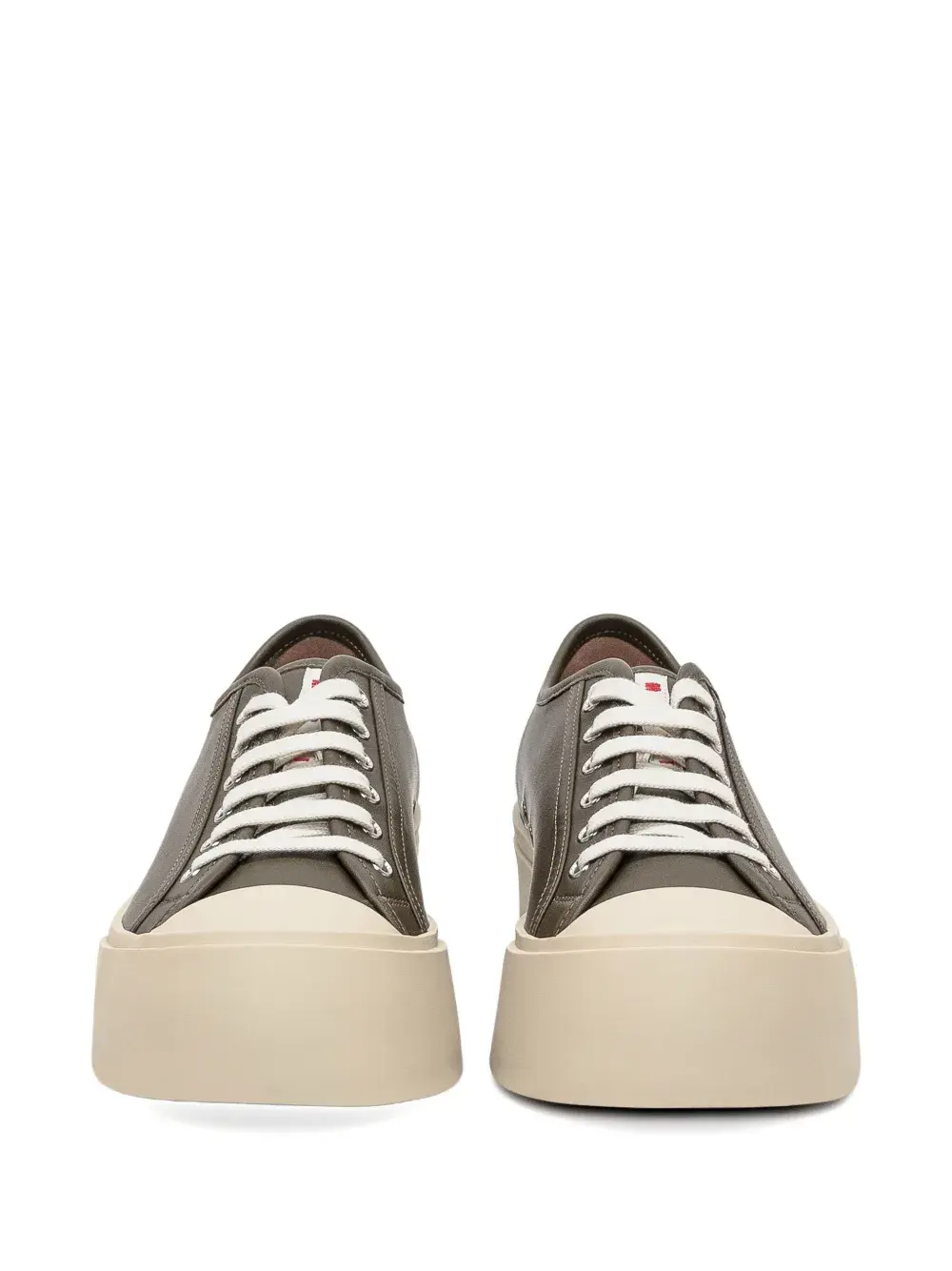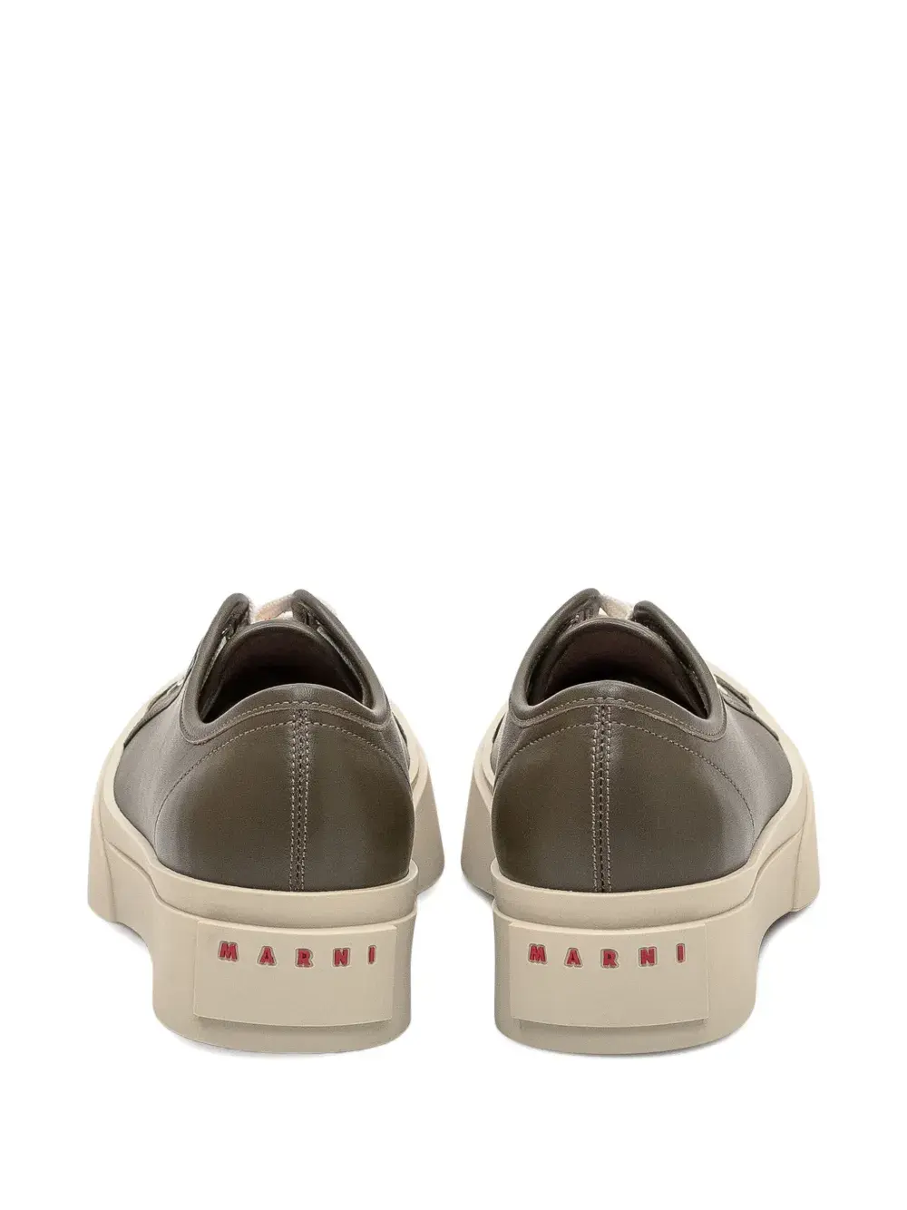 Верх из оливково-коричневой кожи, шнуровка, подошва на платформе, фирменный задник