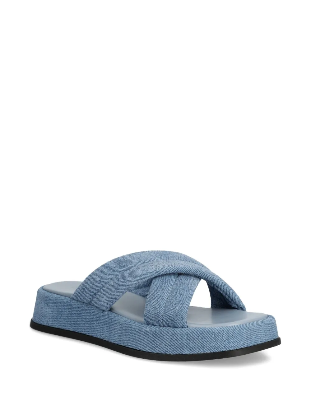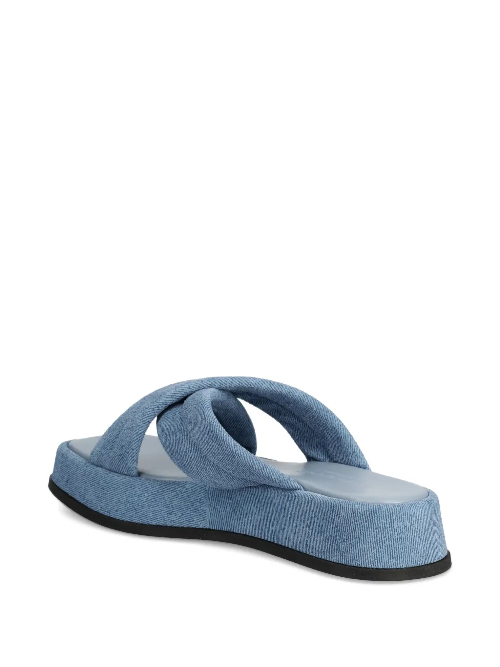 Светло-голубой джинсовый эффект, перекрещенные ремешки, резиновая подошва, платформа