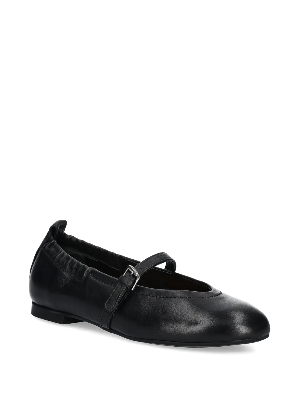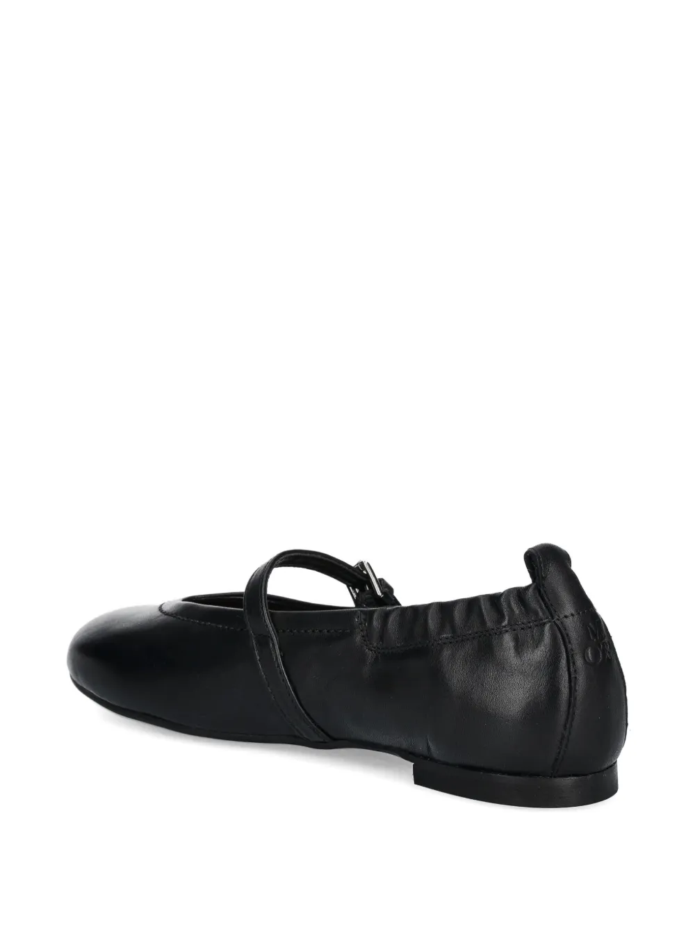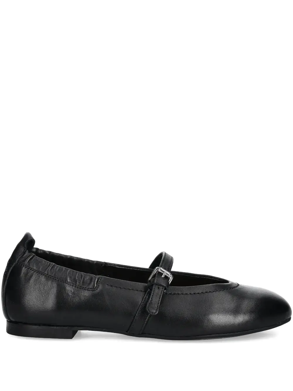 Верх из черной кожи, эластичная задняя часть, застежка на пряжке, ремешок, круглый носок, плоская подошва