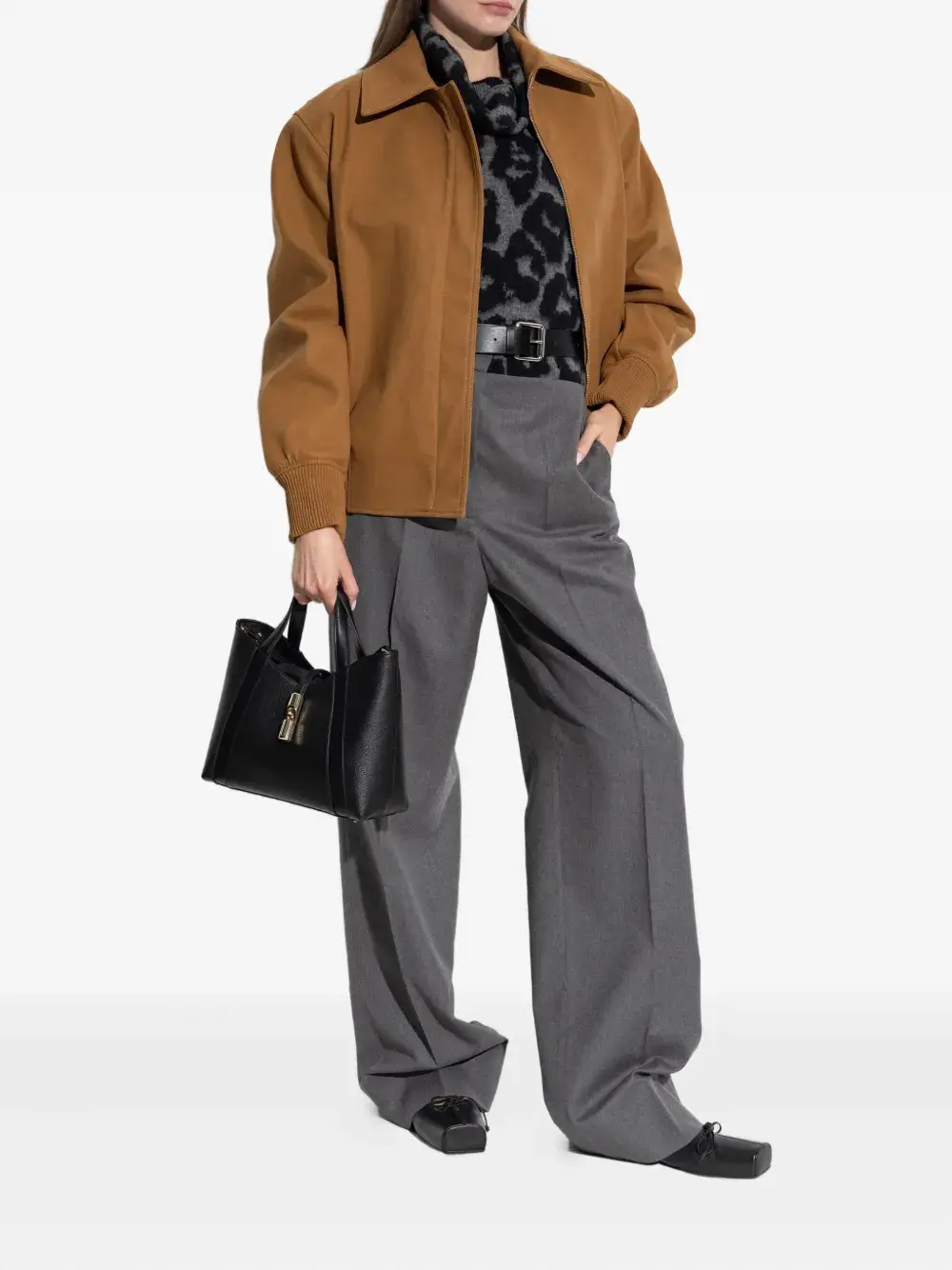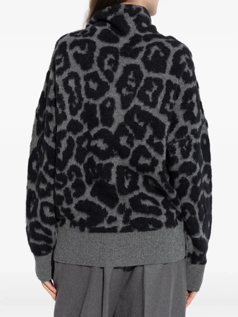 Серая водолазка с леопардовым узором и длинными рукавами