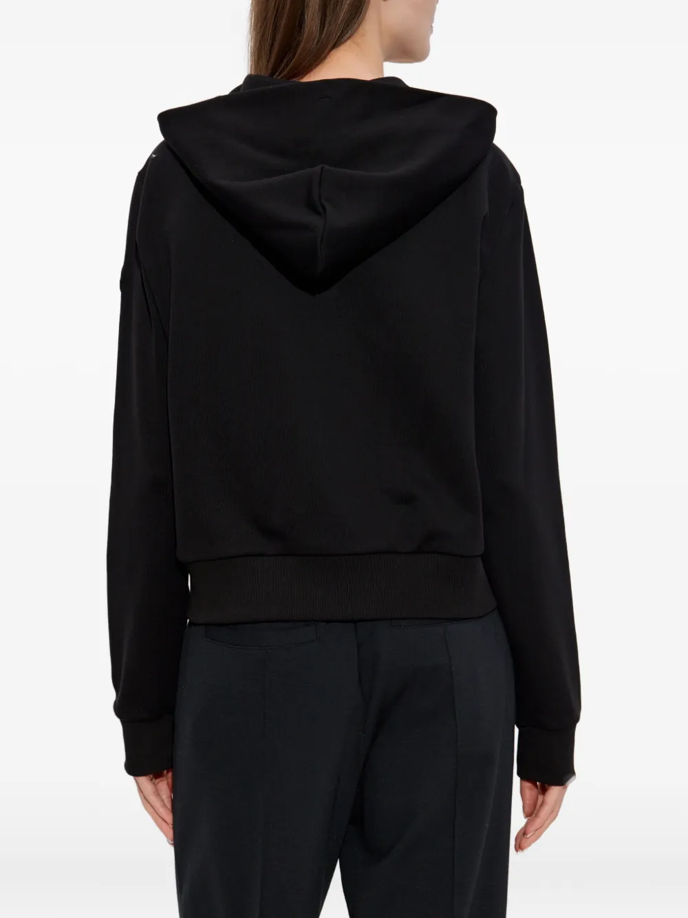 Черные стеганые панели, капюшон, застежка-молния спереди, длинные рукава, ребристый подол