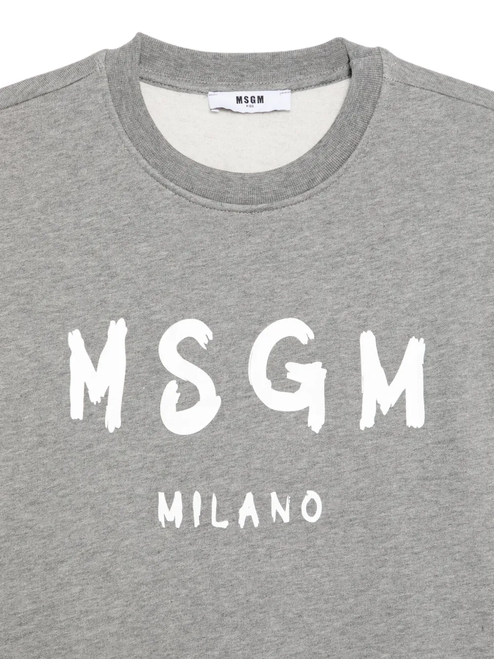 Темно-серый круглый вырез, длинные рукава, хлопковый принт с логотипом