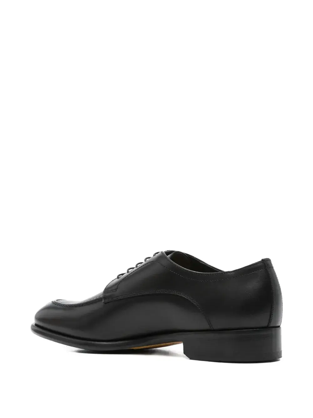 Черный кожаный верх, простой носок, закрытая шнуровка, низкий каблук