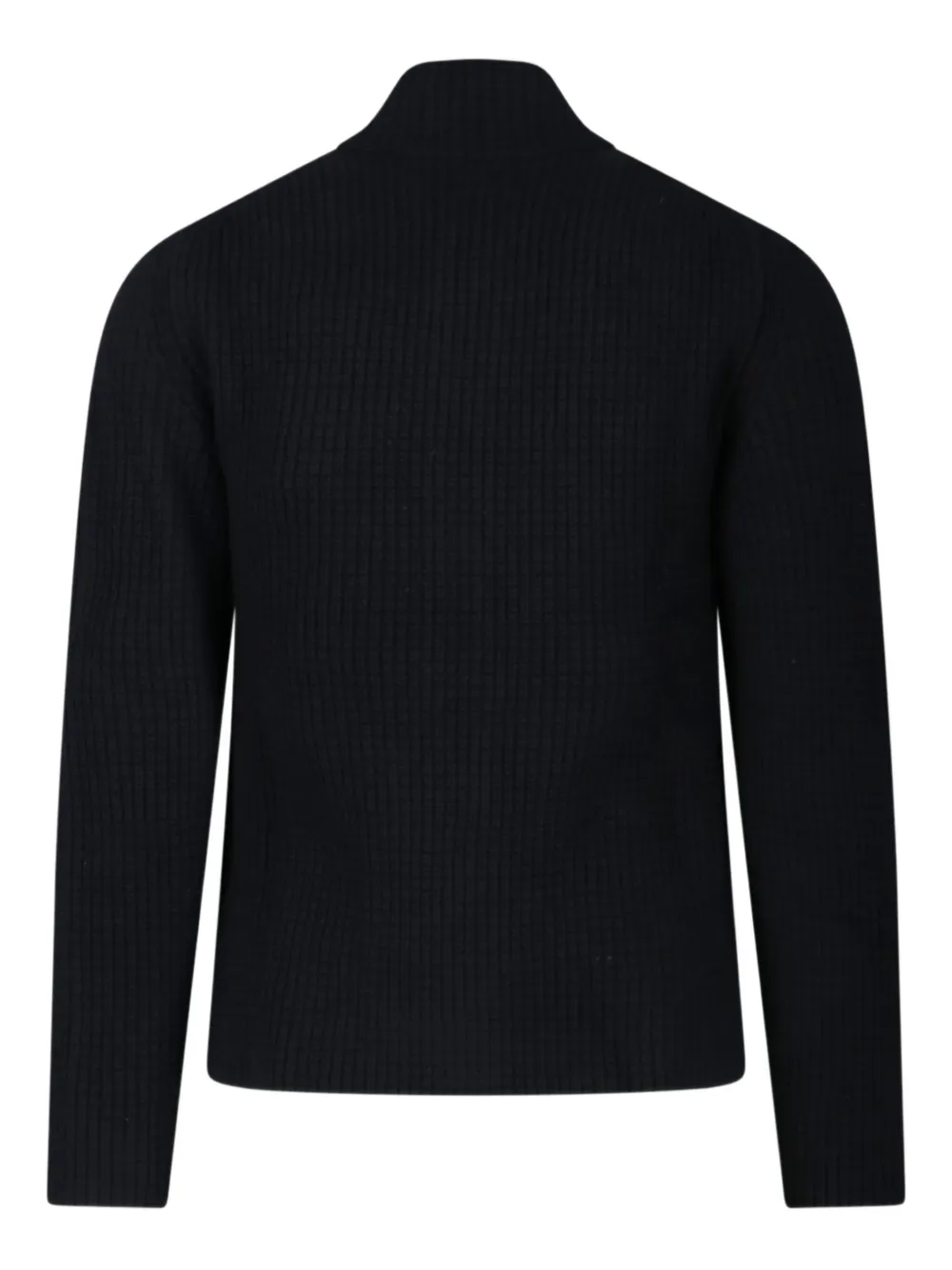 Черная трикотажная кофта с застежкой-молнией, высоким воротом и длинными рукавами. Компания CP Company рекомендует снимать все съемные аксессуары перед стиркой.