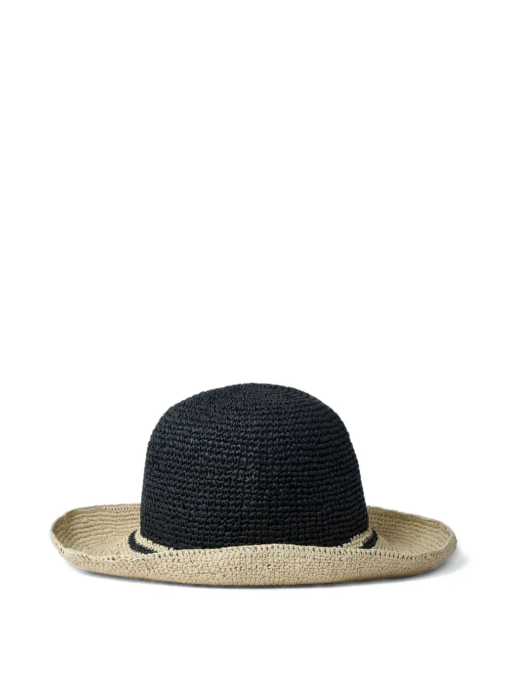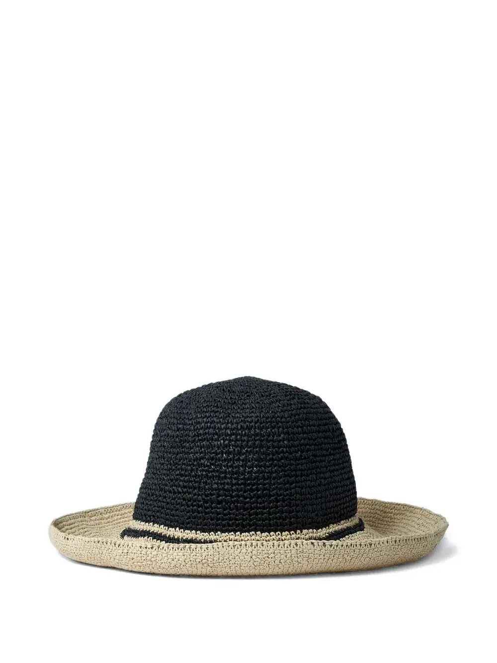 Черная соломенная шляпа с широкими изогнутыми полями и бежевой отделкой