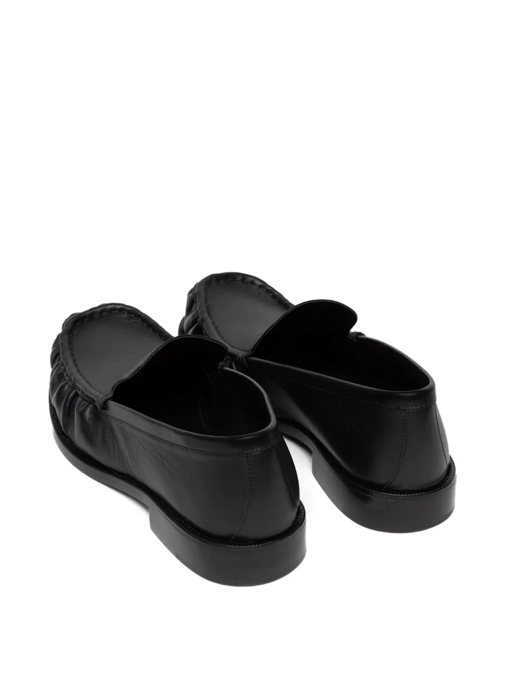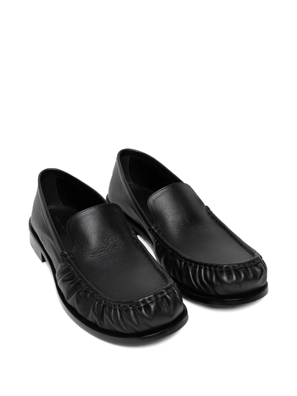 Черные кожаные туфли со сборками, миндалевидный носок, плоская подошва, модель slip-on