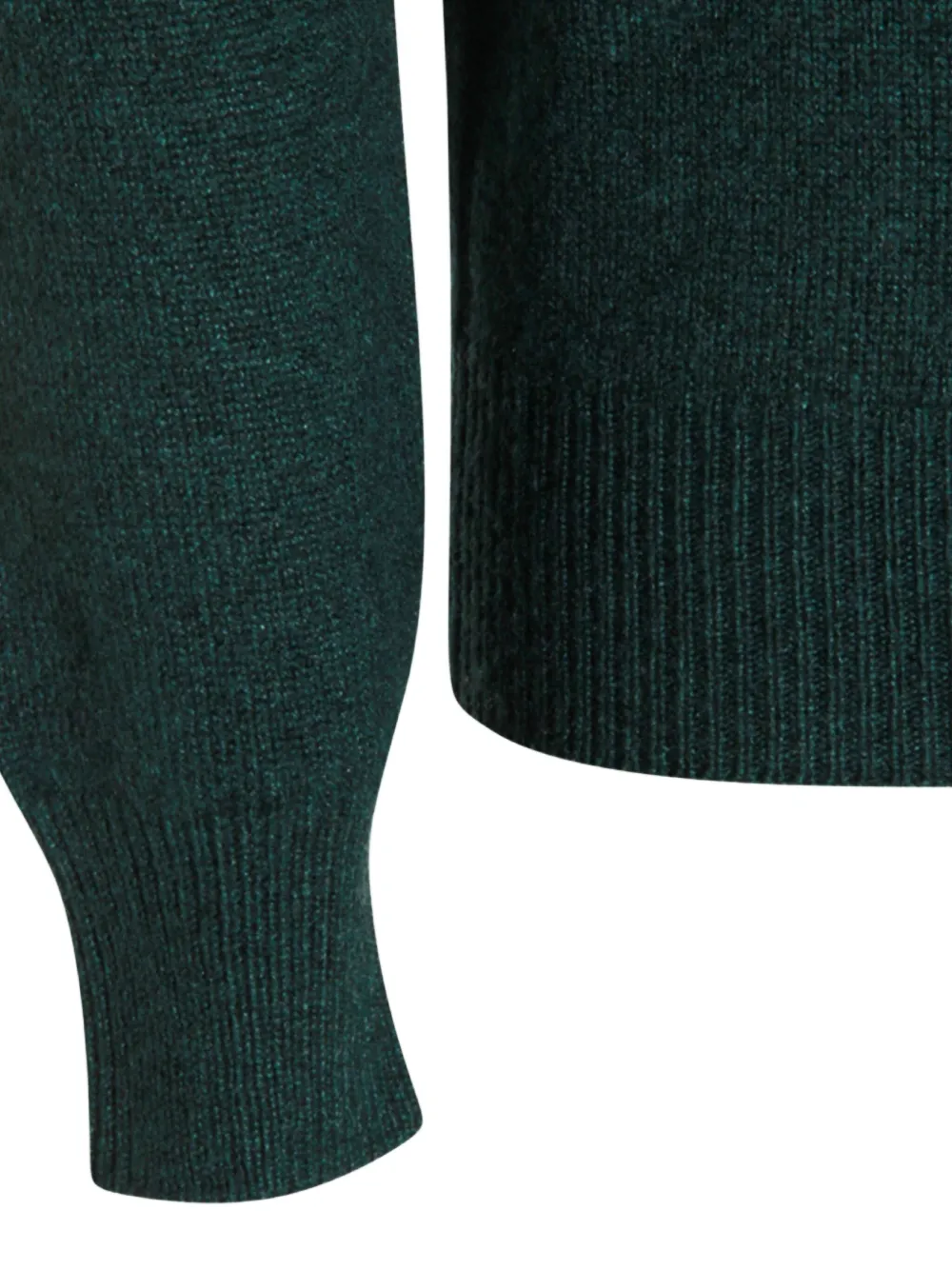 Ребристые манжеты цвета сосны, ребристый подол, круглый вырез, длинные рукава, кашемир