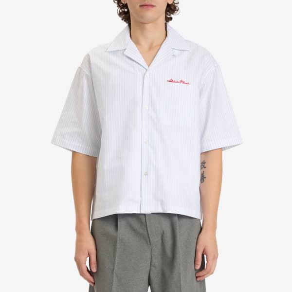 Классическая полосатая рубашка about:blank, воплощающая непринужденный стиль отпуска, станет незаменимым аксессуаром для теплой погоды. Изготовленная из лёгкого хлопка плотностью 140 г/м², полосатый рисунок придаёт модели глубину и текстуру, а яркий красный акцент на нагрудном кармане создаёт идеальный фирменный акцент.