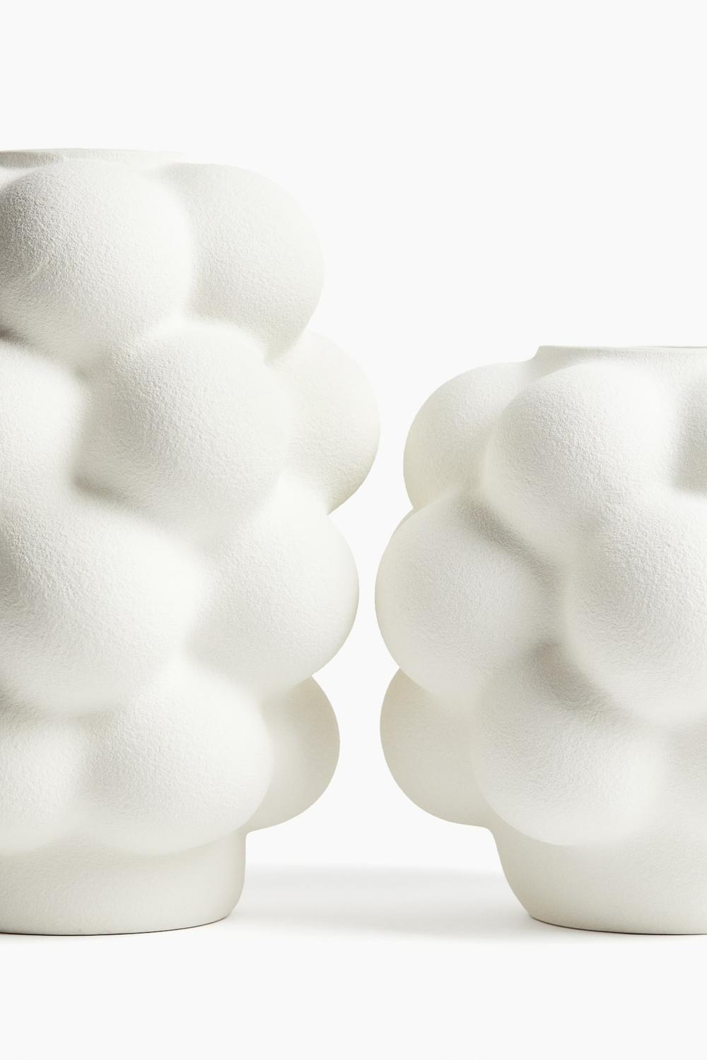 Керамическая ваза с игривой формой пузыря и изящной структурированной поверхностью.