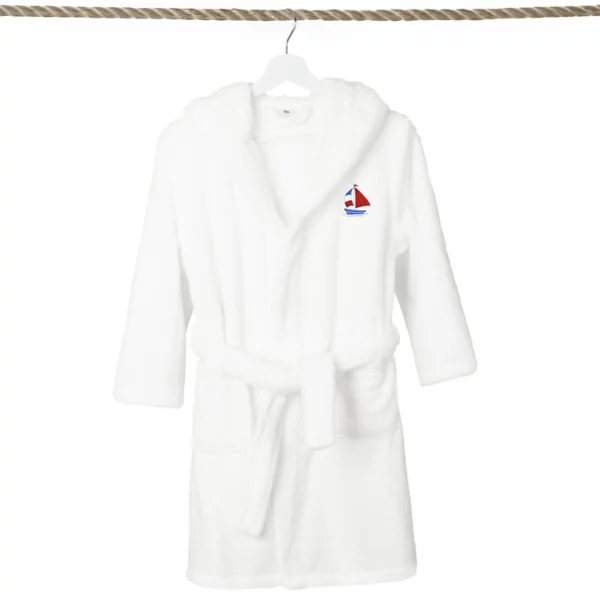 Детский супер плюшевый халат с капюшоном в виде лодки Linum Home Textiles, белый