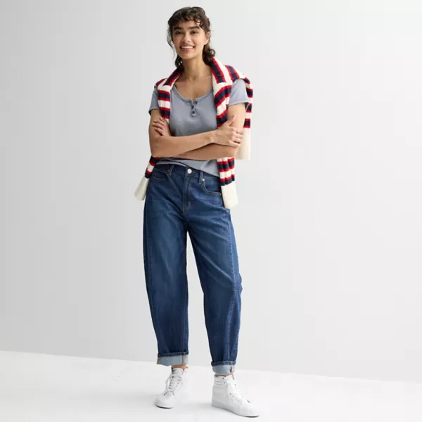 Дополните свой гардероб этими стильными джинсами-бочками с высокой талией и швами от SO. Разработанные с учетом стиля и комфорта, они обеспечивают удобную посадку, которая легко сочетается с чем угодно, от повседневных футболок до модных блузок, что делает их идеальными для любого случая.
