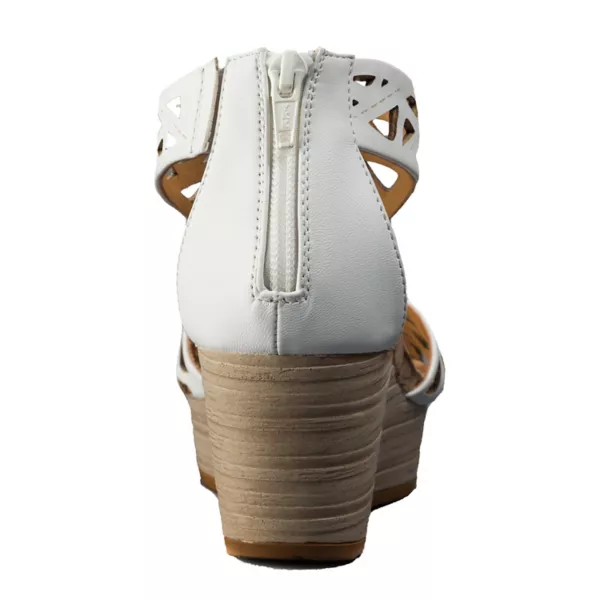 Лазерная резка и открытый носок этих женских босоножек на танкетке Baretraps Miriam идеально сочетаются с джинсами или платьем.