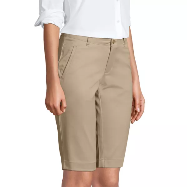 Эти женские шорты-бермуды Lands' End Stretch Chino с поясом контурного кроя удобны и симпатичны.