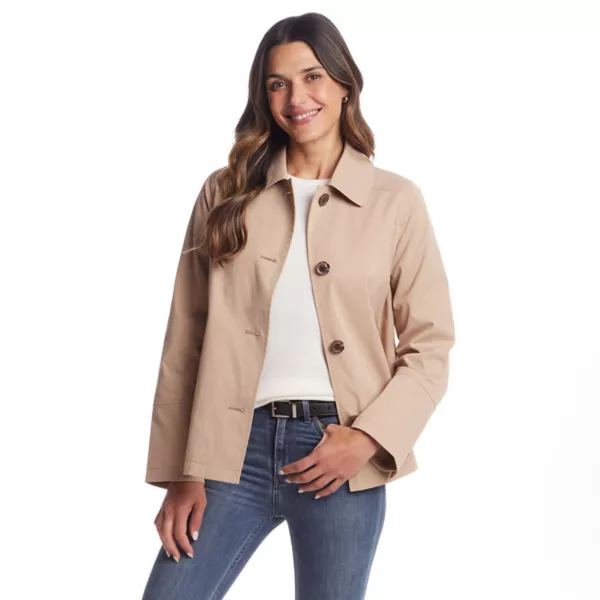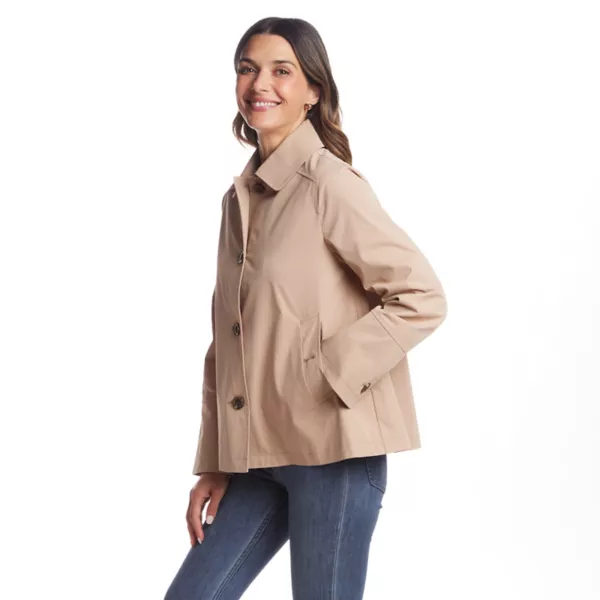Добавьте модного преображения в свой гардероб верхней одежды с помощью этой короткой женской дождевика А-силуэта от Gallery.