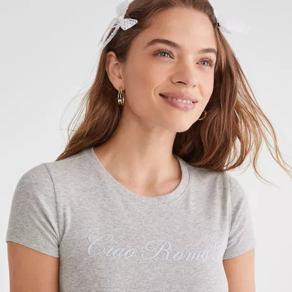 Добавьте немного стиля в свой повседневный образ с этой укороченной детской футболкой Aeropostale для подростков.