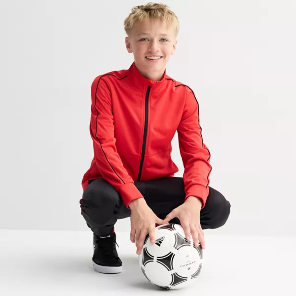 Украсьте гардероб вашего юного спортсмена этой стильной курткой от Tek Gear. Она идеально подходит для многослойной одежды в прохладные дни, сочетая комфорт и функциональность, позволяя ему оставаться в тепле во время тренировок или игр, при этом оставаясь стильным и стильным.
