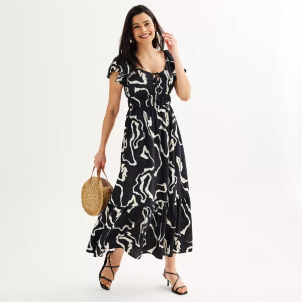 Всегда производите впечатление в этом потрясающем макси-платье с развевающимися рукавами от Nine West.