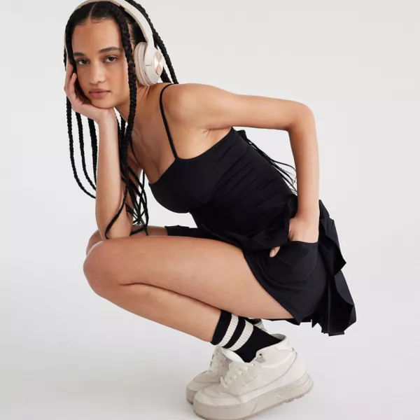 Это молодежное платье Aeropostale Active с плиссировкой обеспечивает гибкость для комфортных движений.
