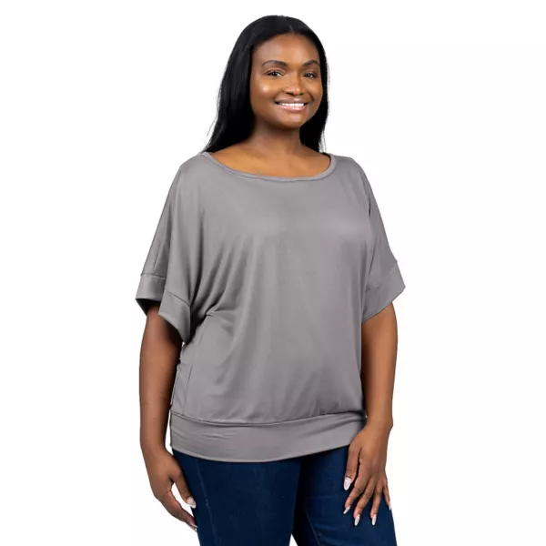 Обновите свой гардероб с этим топом «летучая мышь» Plus Size 24Seven Comfort Apparel с короткими рукавами.