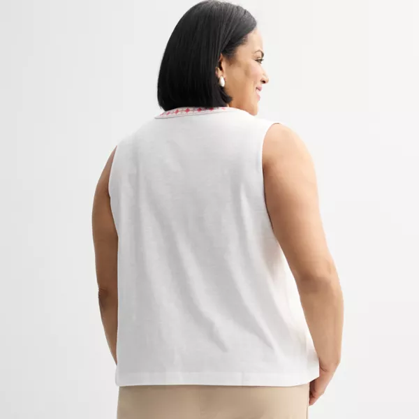 Плюс сайз майка с вышитым краем Croft & Barrow, белый