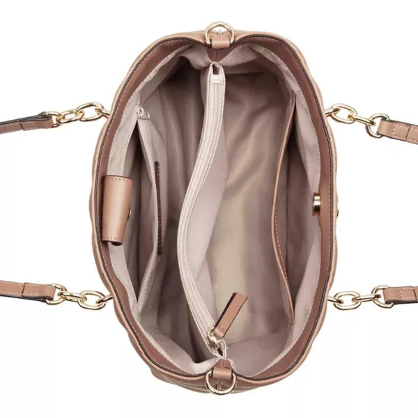 Подчеркните свой повседневный стиль с этой шикарной сумкой от Nine West, созданной с заботой о функциональности и элегантности. Благодаря современной мягкой ромбовидной подкладке, трем отделениям и роскошному золотому брендингу, она легко организует все необходимое, а удобные лямки позволят носить ее с собой везде.