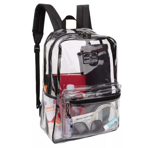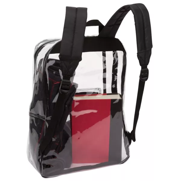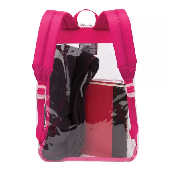 Этот прозрачный рюкзак с передним карманом на молнии и регулируемыми ремнями обеспечивает достаточно места для хранения книг, школьных принадлежностей и многого другого.