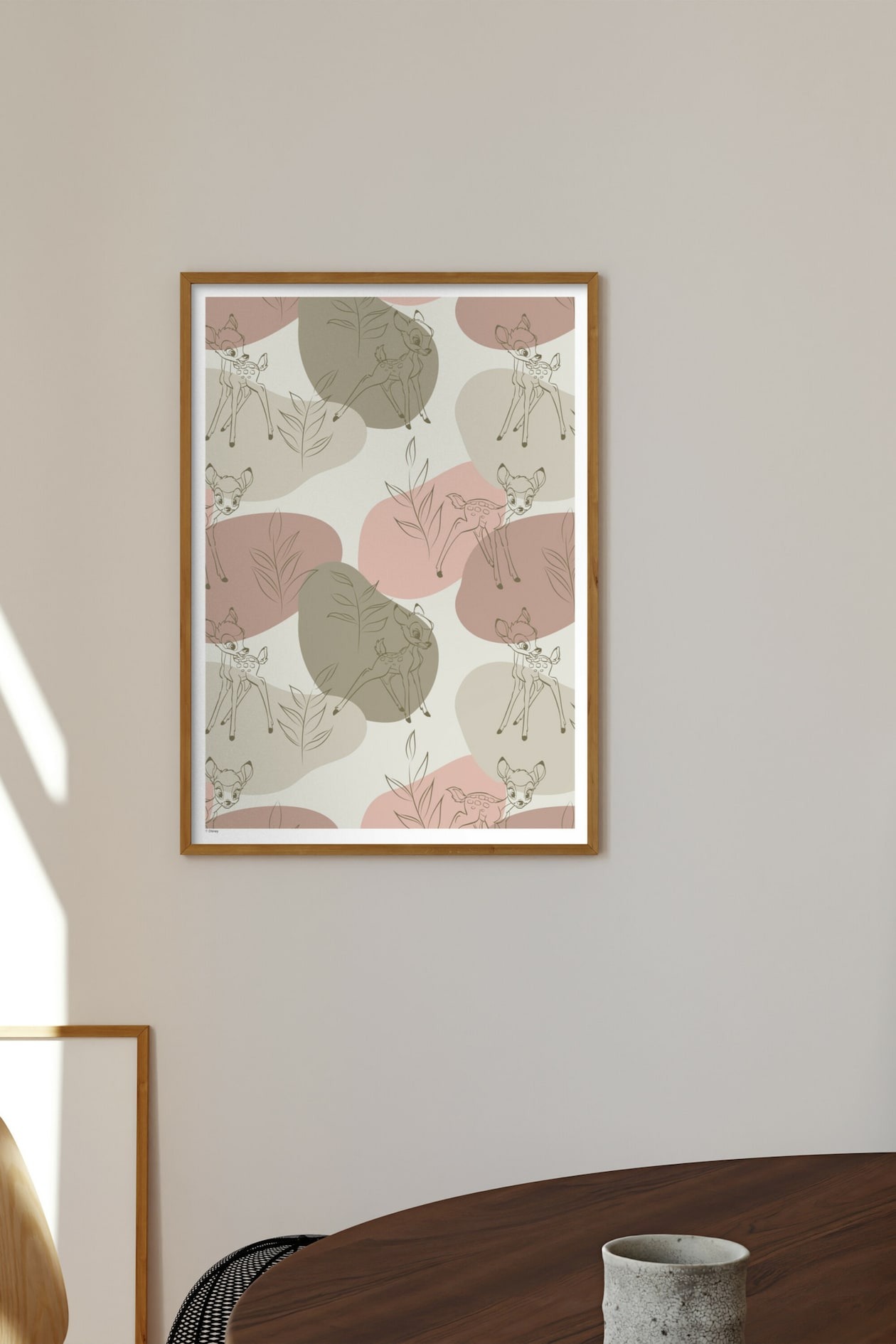 Этот минималистичный и волшебный постер, вдохновлённый мультфильмом «Бэмби», представляет собой изящный набросок диснеевского Бэмби на нежно-зелёном фоне. Идеально подходит для спокойных спален, детских комнат или интерьеров, вдохновлённых природой.