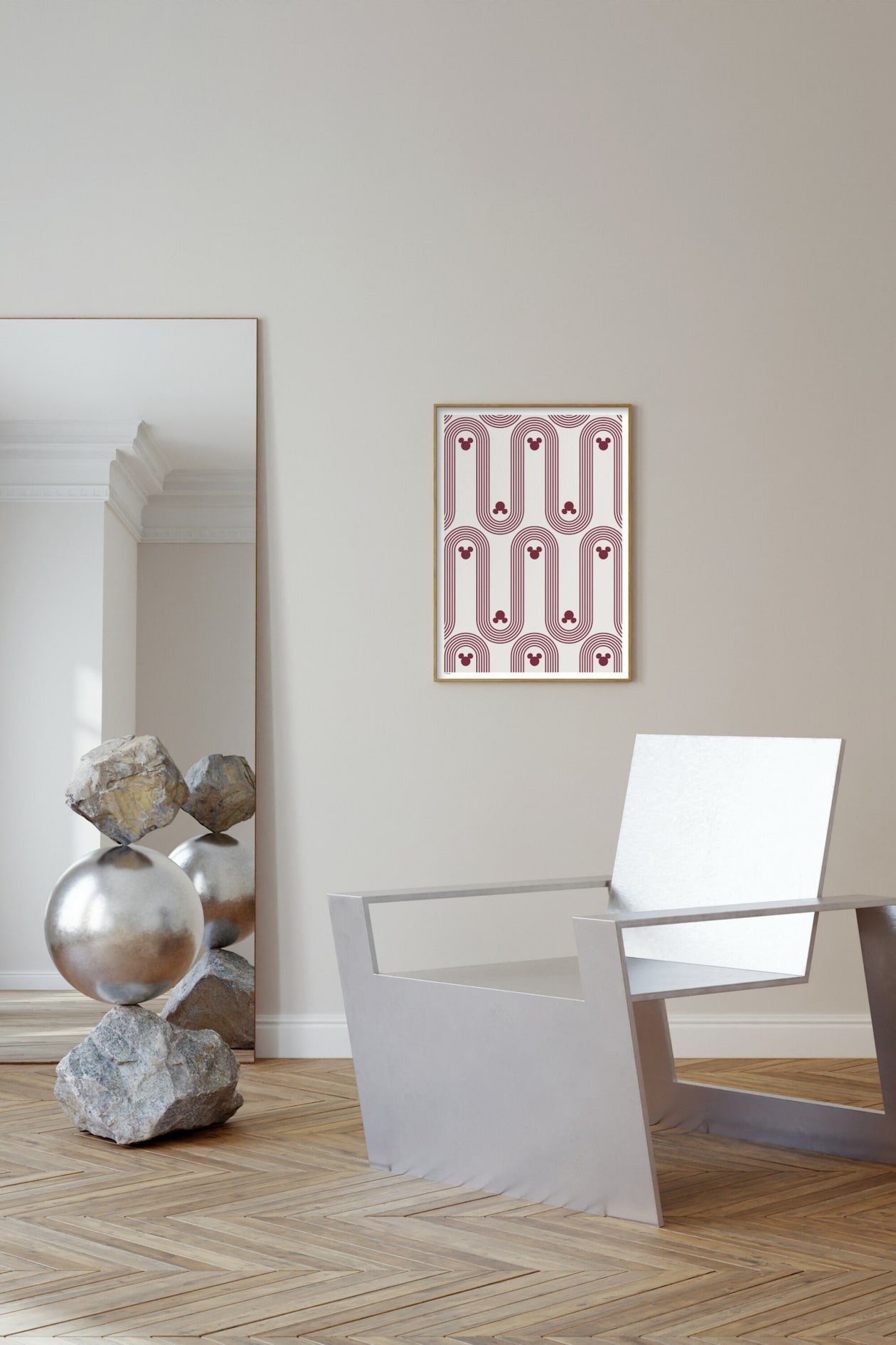 Этот постер, вдохновлённый Микки Маусом, сочетает в себе плавное движение и многослойные силуэты, создавая ритмичный, почти гипнотический узор. Этот постер, представляющий собой смелый визуальный взгляд на классическую икону, идеально впишется в любой интерьер — от творческих студий до художественных галерей.