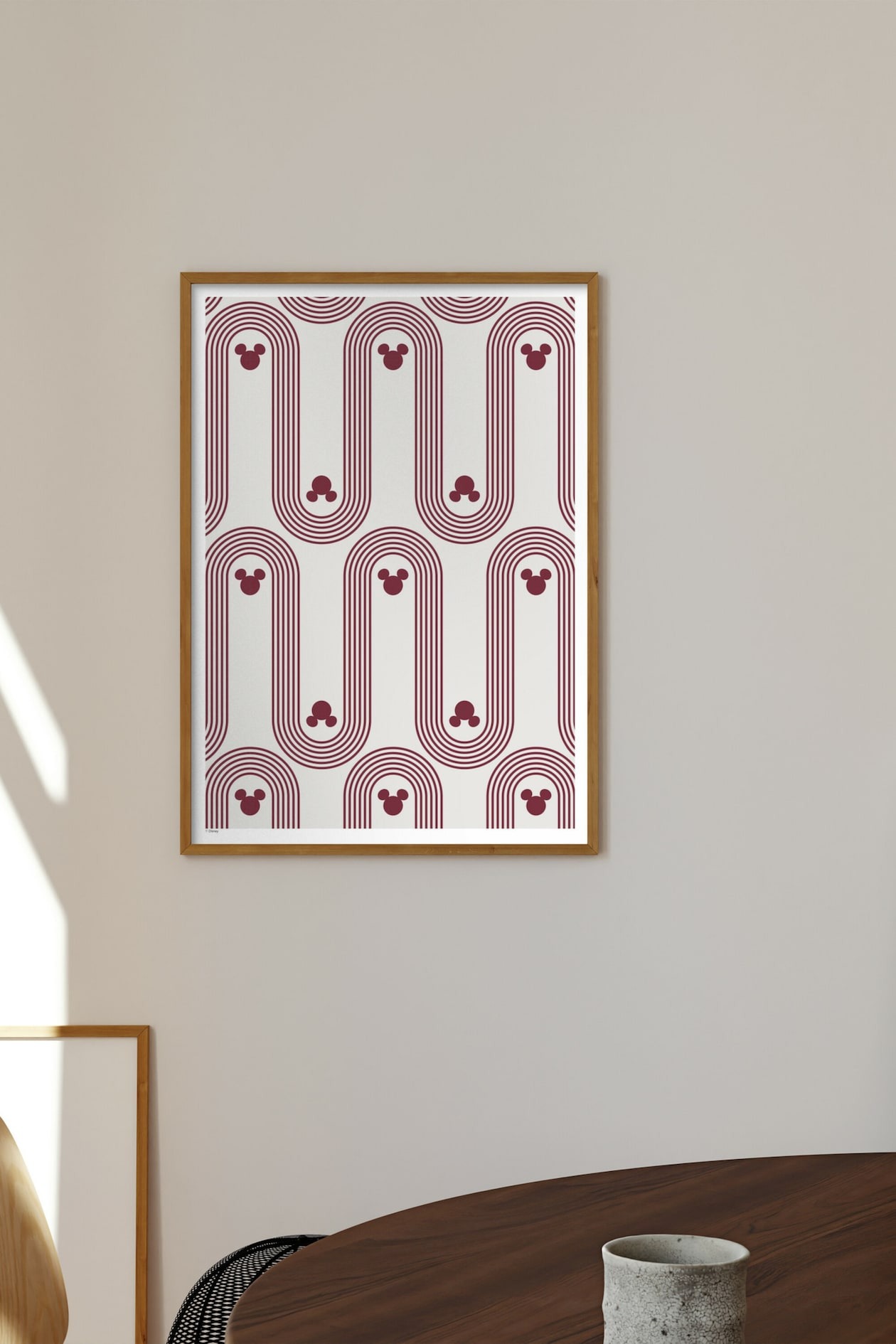 Этот постер, вдохновлённый Микки Маусом, сочетает в себе плавное движение и многослойные силуэты, создавая ритмичный, почти гипнотический узор. Этот постер, представляющий собой смелый визуальный взгляд на классическую икону, идеально впишется в любой интерьер — от творческих студий до художественных галерей.