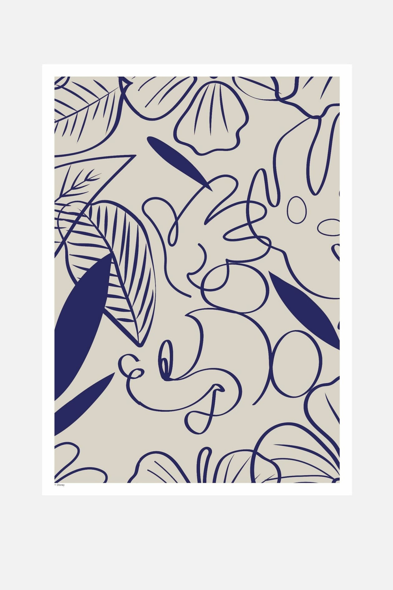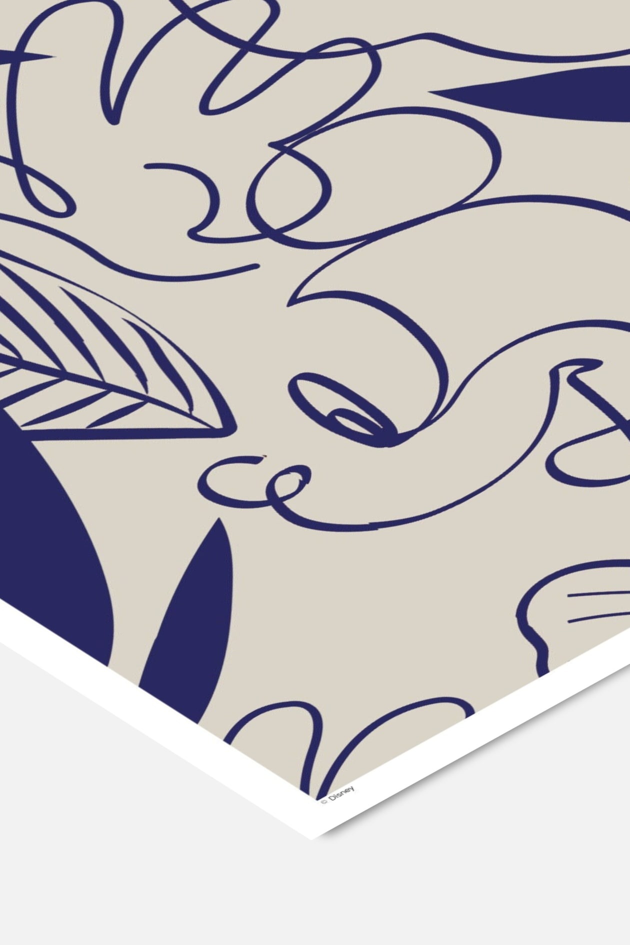Природа встречается с ностальгией в этом дизайне, вдохновлённом Микки Маусом. Силуэт Микки Мауса обрамлён нежной голубой листвой, создавая успокаивающую, органичную атмосферу. Современное настенное искусство в стиле Диснея для уютных и стильных домов.