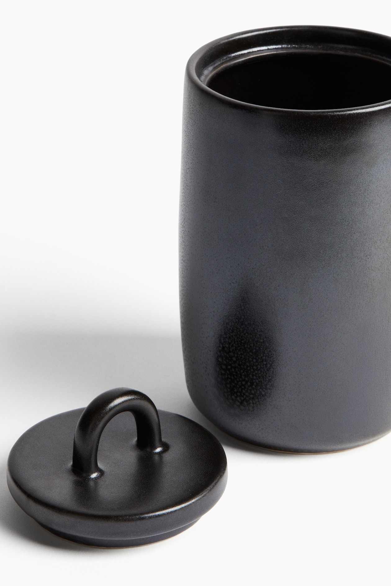 Керамический контейнер с крышкой и ручкой.