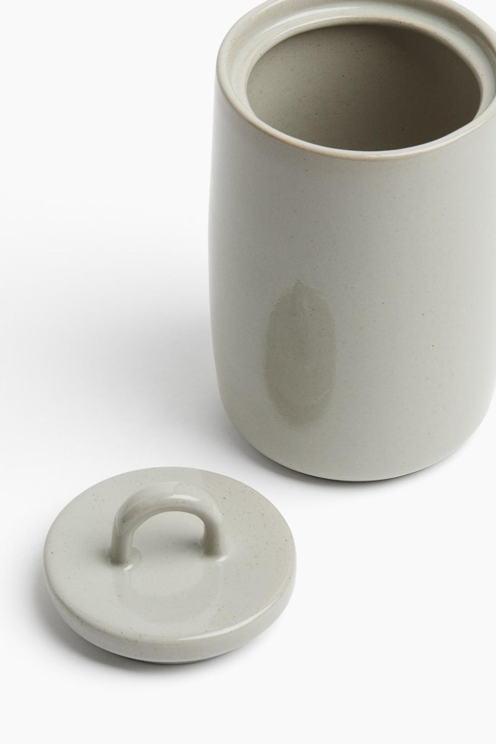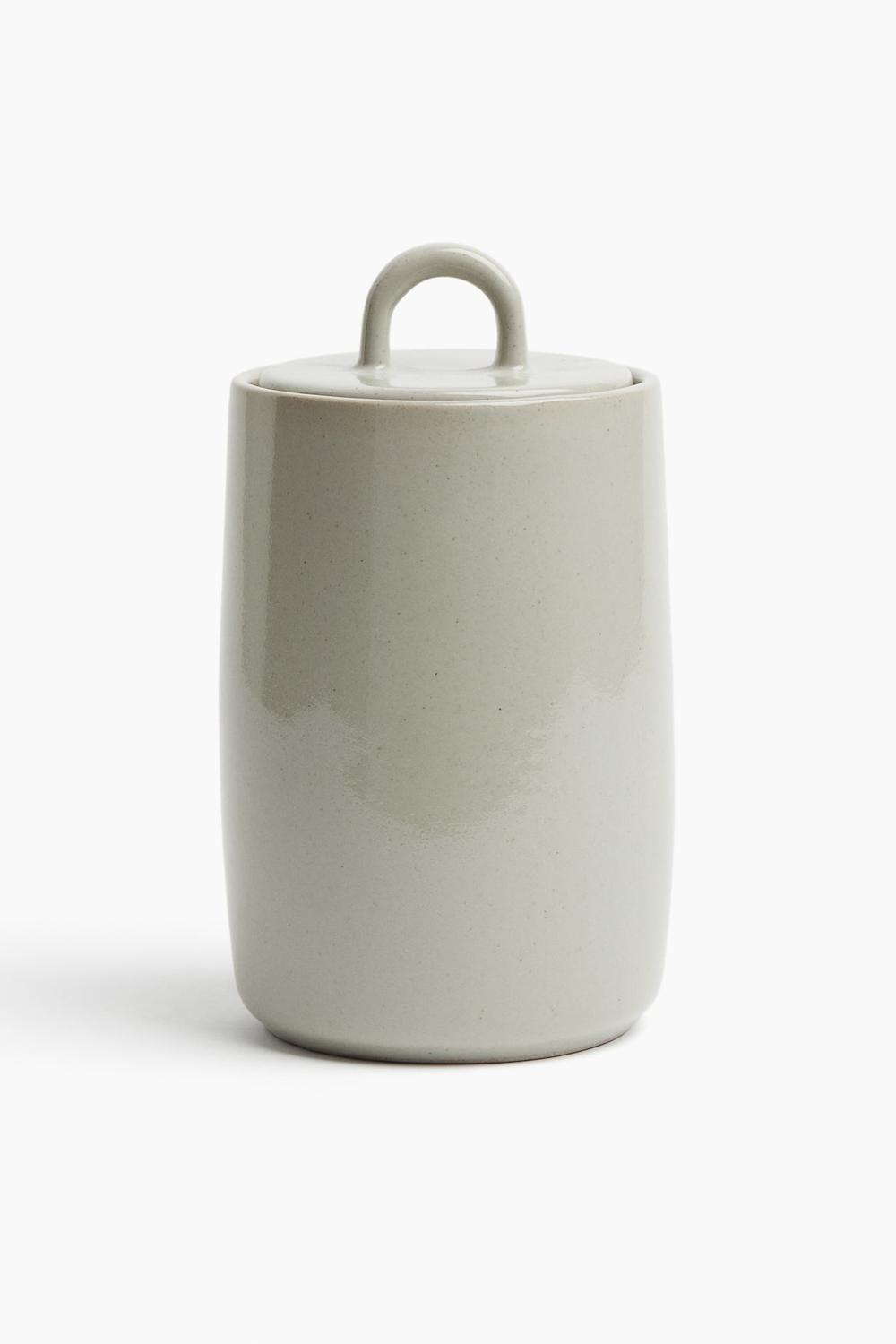 Керамический контейнер с крышкой и ручкой.