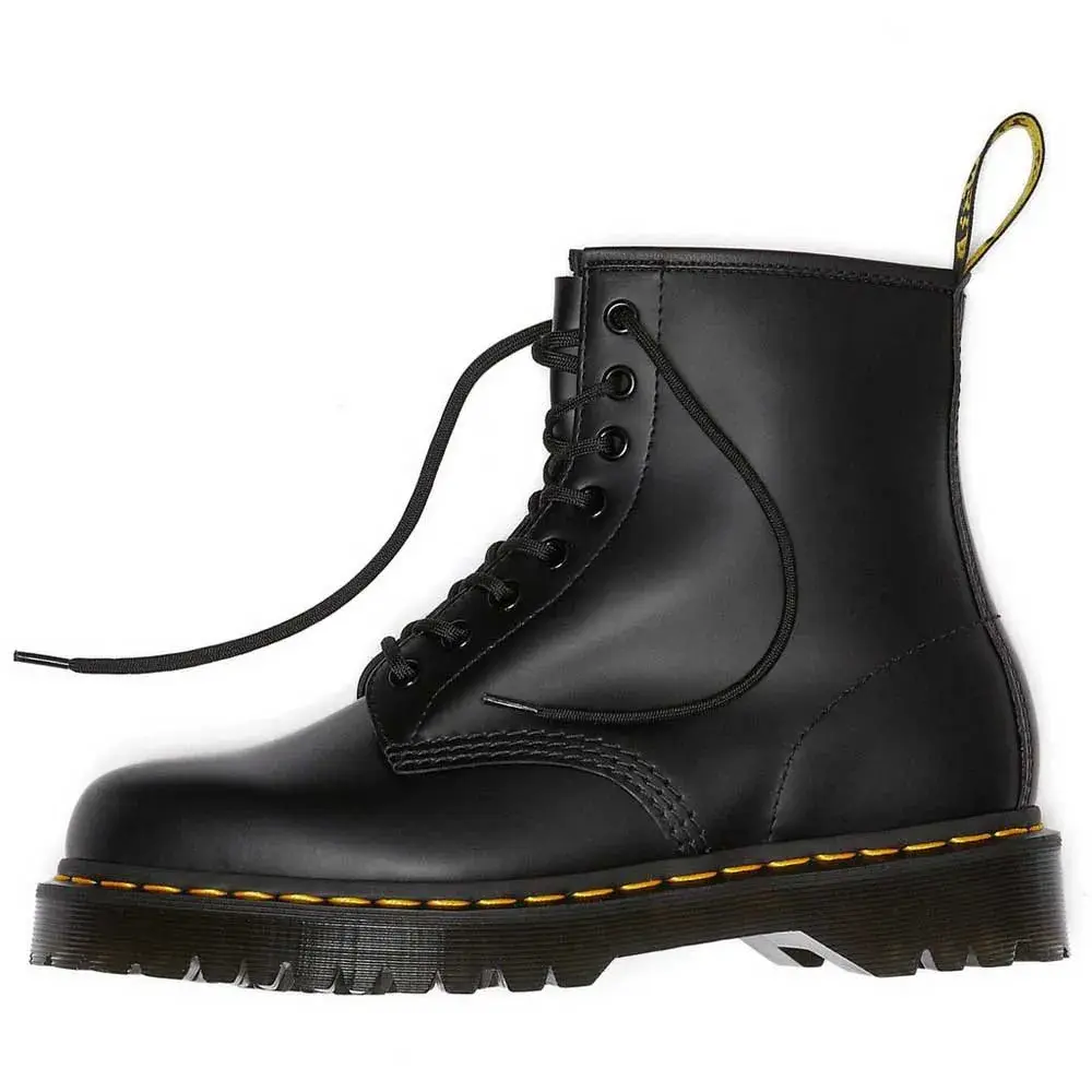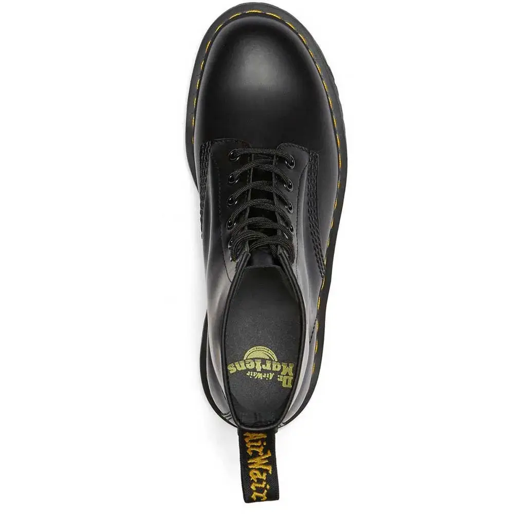 Модель 1460 — это оригинальные ботинки Dr. Martens. Их узнаваемая ДНК выглядит так: 8 отверстий для шнуровки, классическая гладкая кожа Dr. Martens, рифленые боковины, петля на пятке, жёлтая строчка и удобная подошва с воздушной амортизацией.