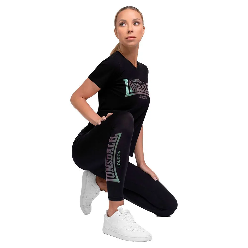 Леггинсы из эластичного материала с переливающимся принтом на правой штанине. В зависимости от падения света, принт может проявляться.