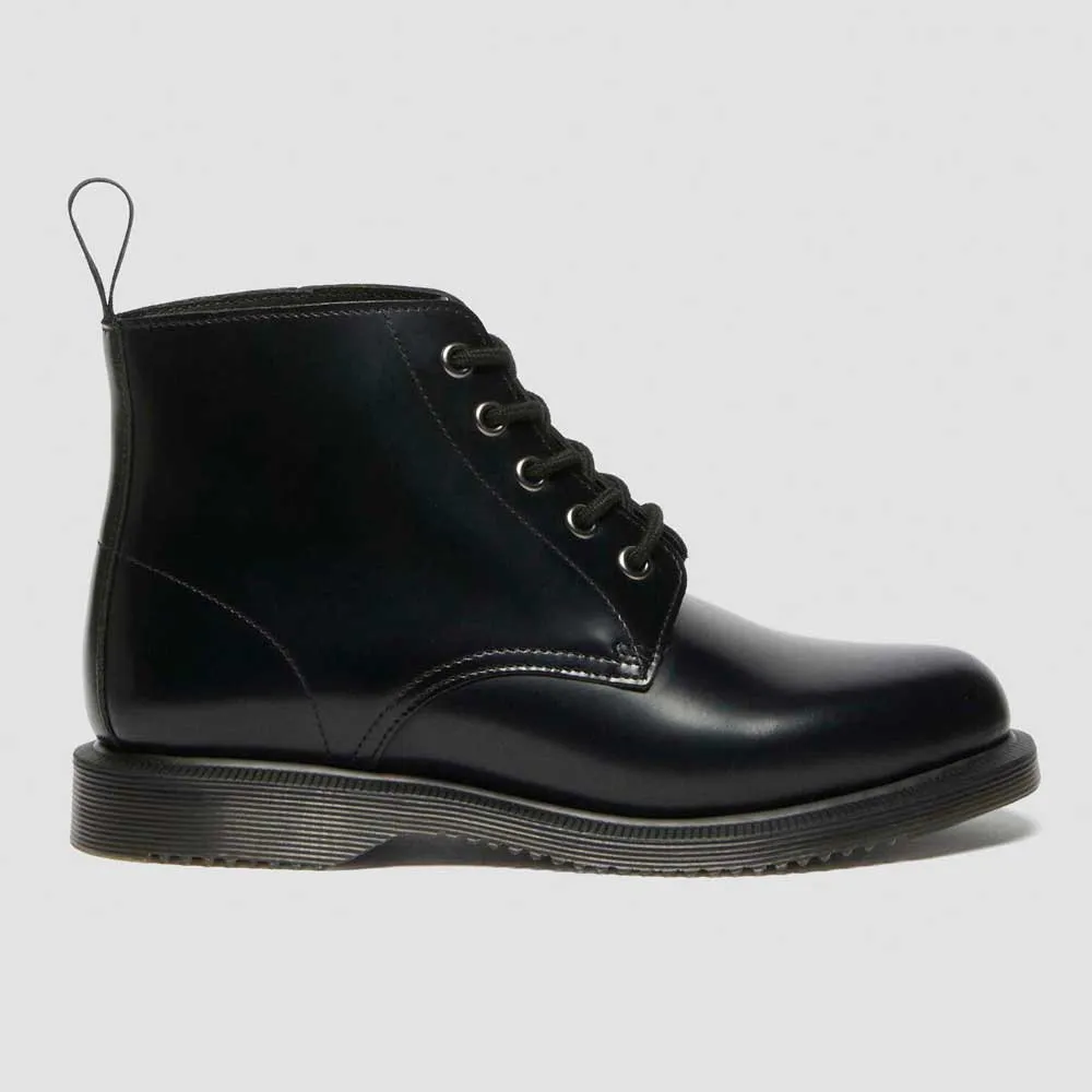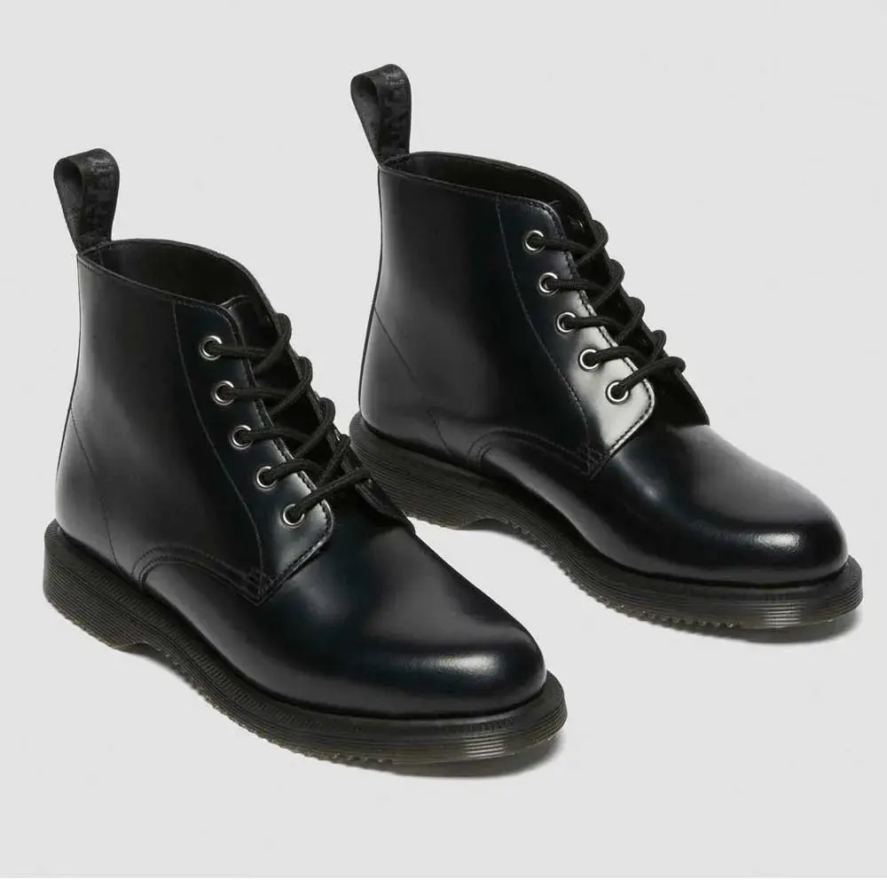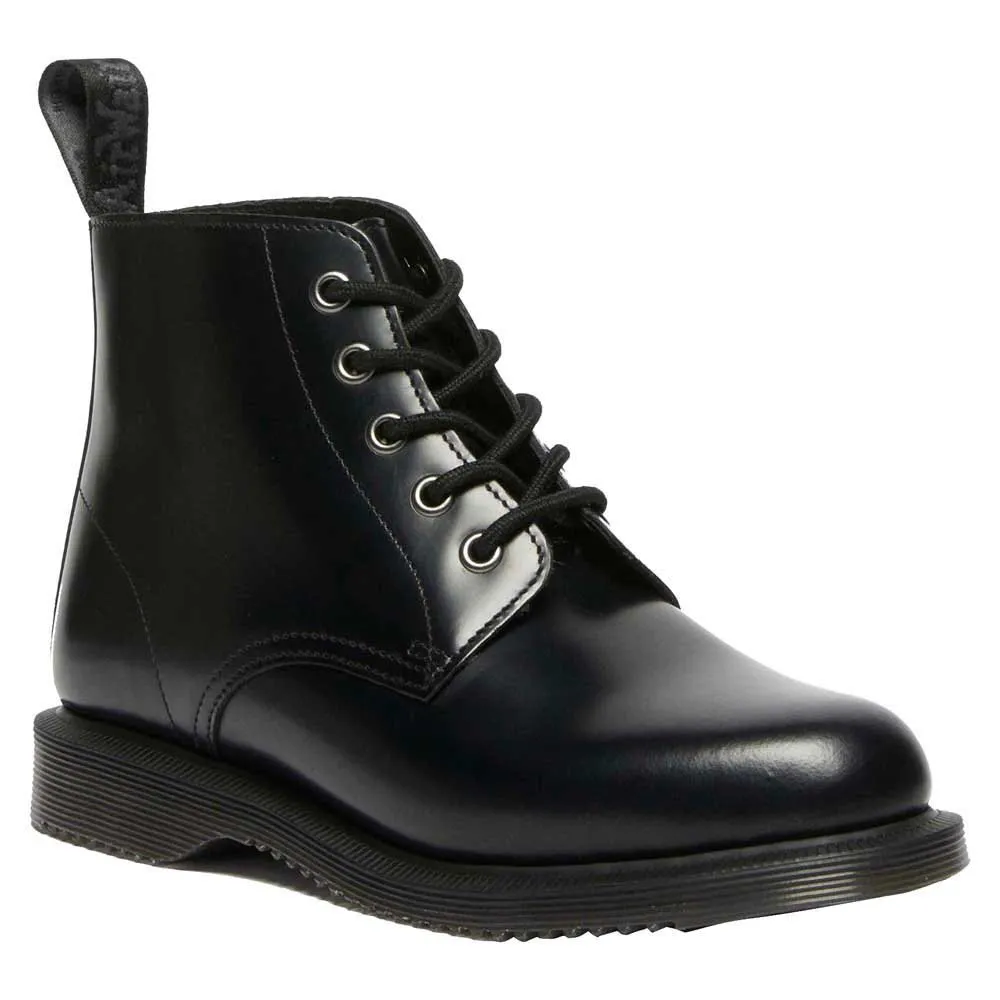 Ботинки DR MARTENS Emmeline — стильный и универсальный вариант для женщин, которые ищут классические и вневременные ботинки. Эти черные кожаные ботинки отличаются элегантным минималистичным дизайном, шнуровкой и слегка заостренным носком. Низкий каблук обеспечивает комфорт и поддержку, делая их идеальными для повседневной носки.