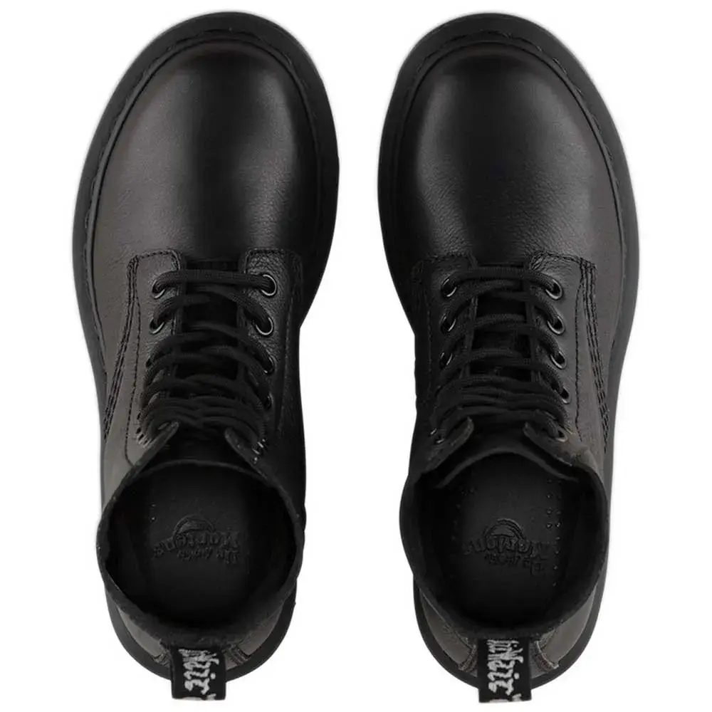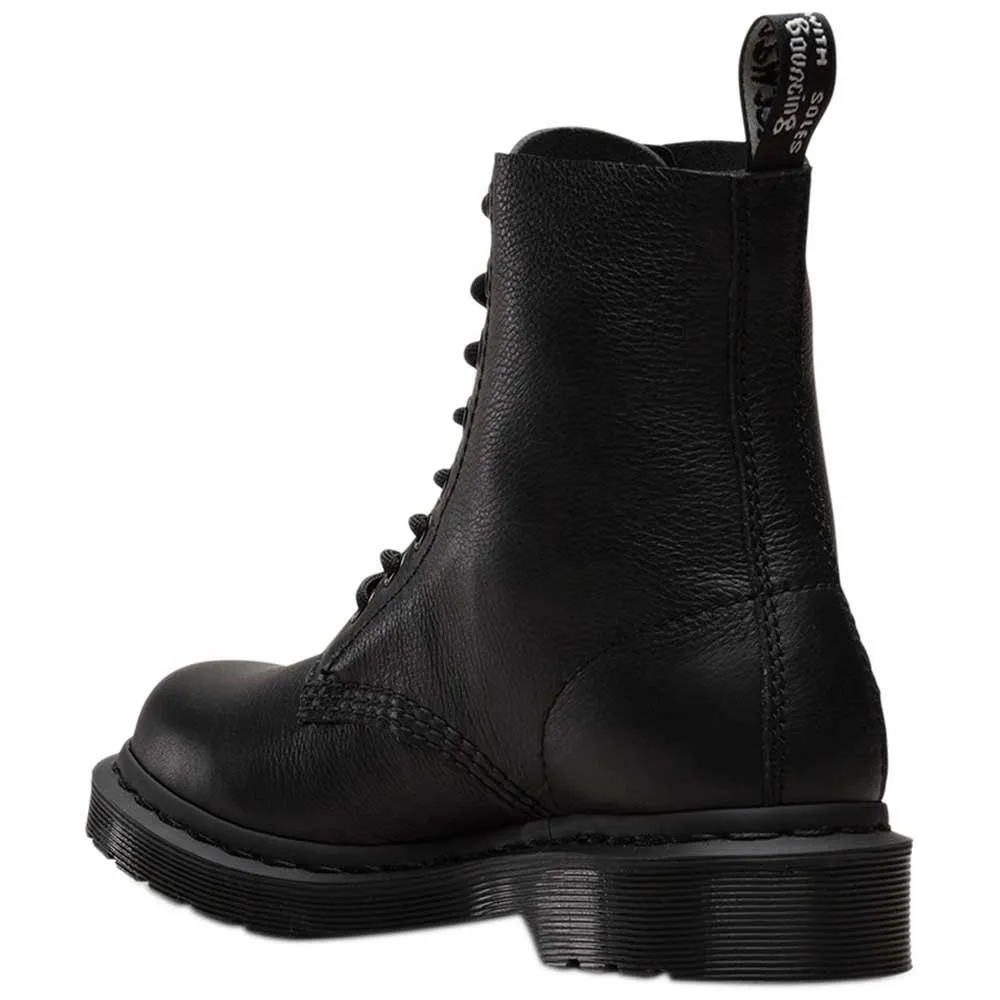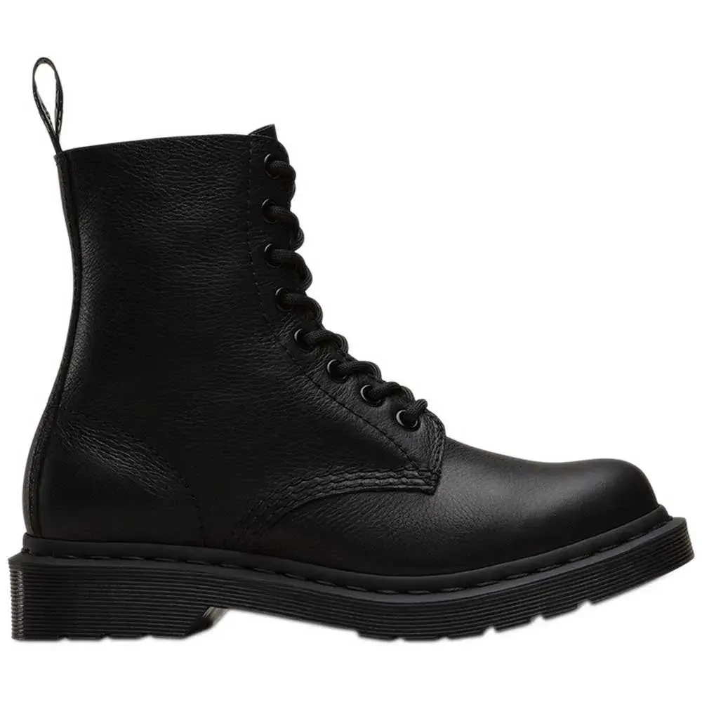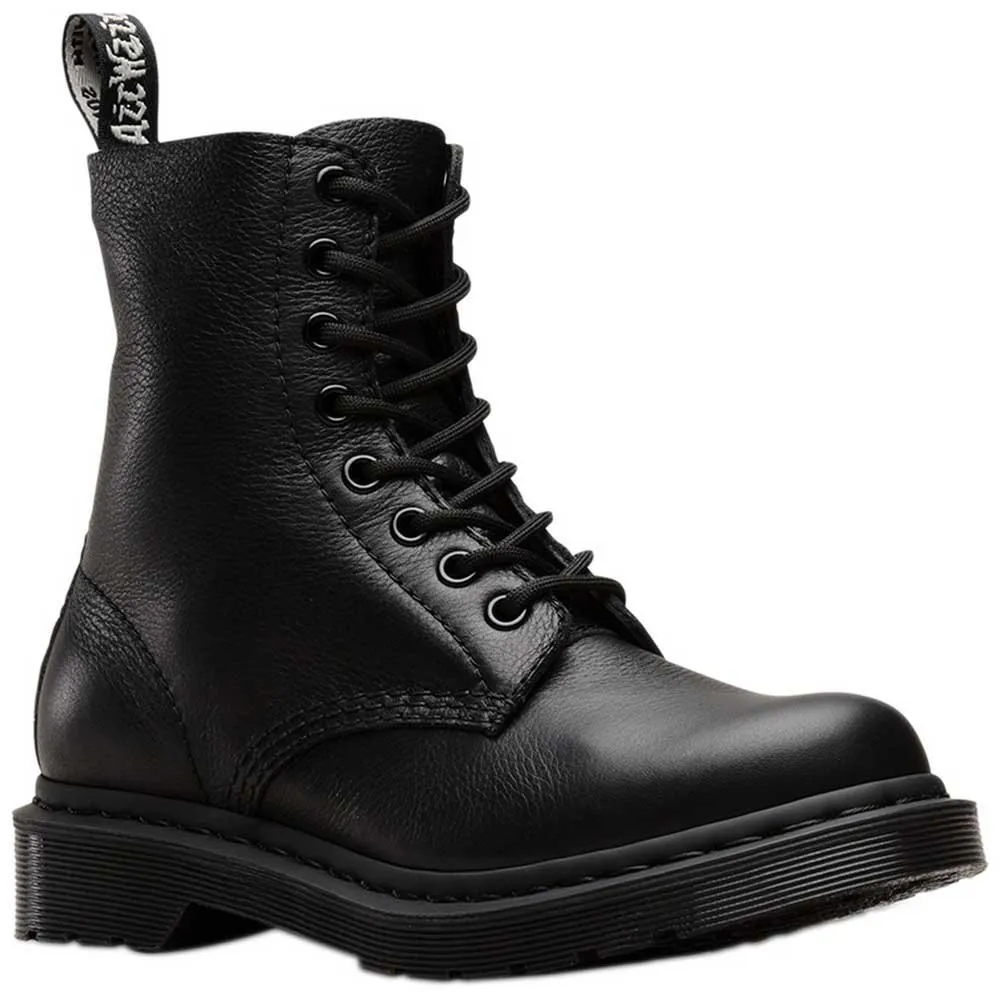 Модель 1460 Pascal сохранила всю историю и надежность оригинальной культовой модели с восемью люверсами, а также все ее отличительные черты, такие как фирменная петля на пятке, видимые швы и рифленые края на подошве с воздушной амортизацией. А теперь они представлены в монохромном черном цвете с головы до ног из супермягкой, неразборчивой кожи Virginia.