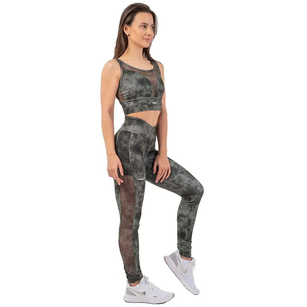 Леггинсы с V-образной высокой талиейScunch Butt & Squat proofСетка с подкладкой по бокамУникальный дизайн в технике тай-дайСветоотражающий логотип NEBBIAОтлично сочетается со спортивным бюстгальтером BreatheМатериалы: