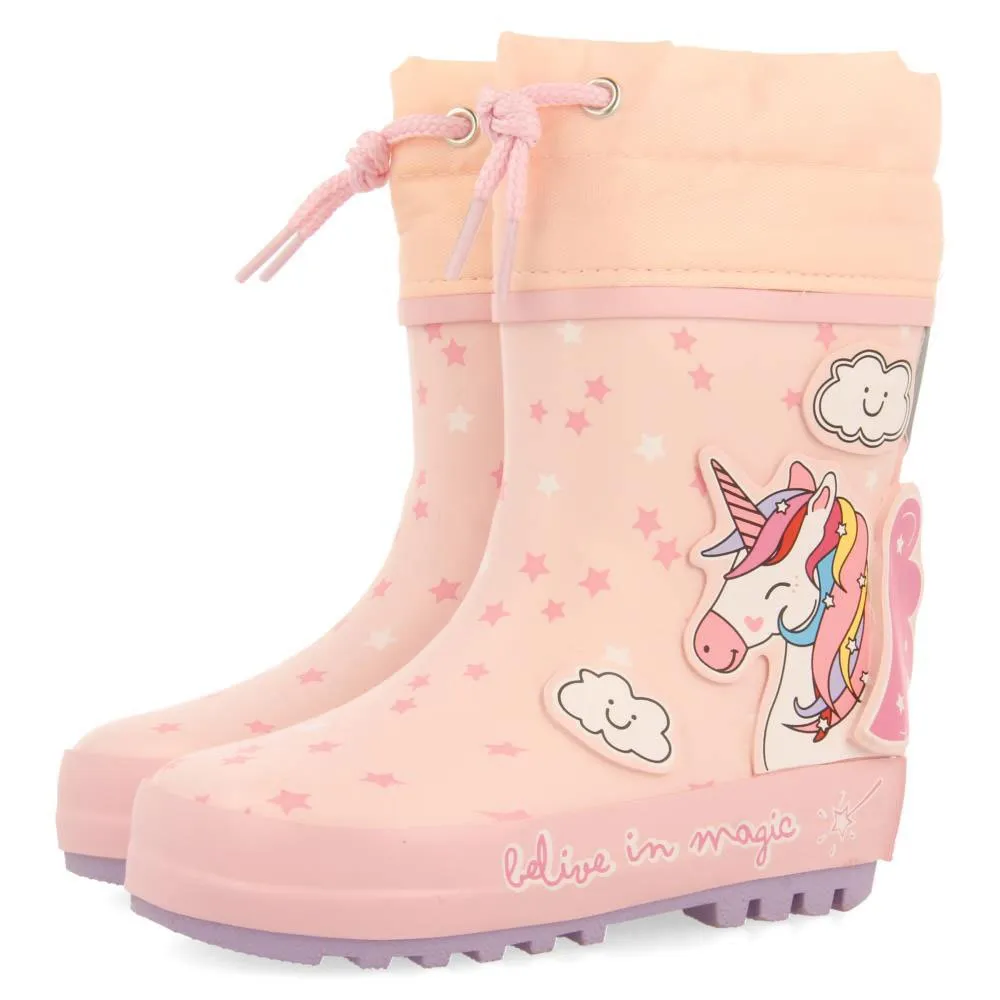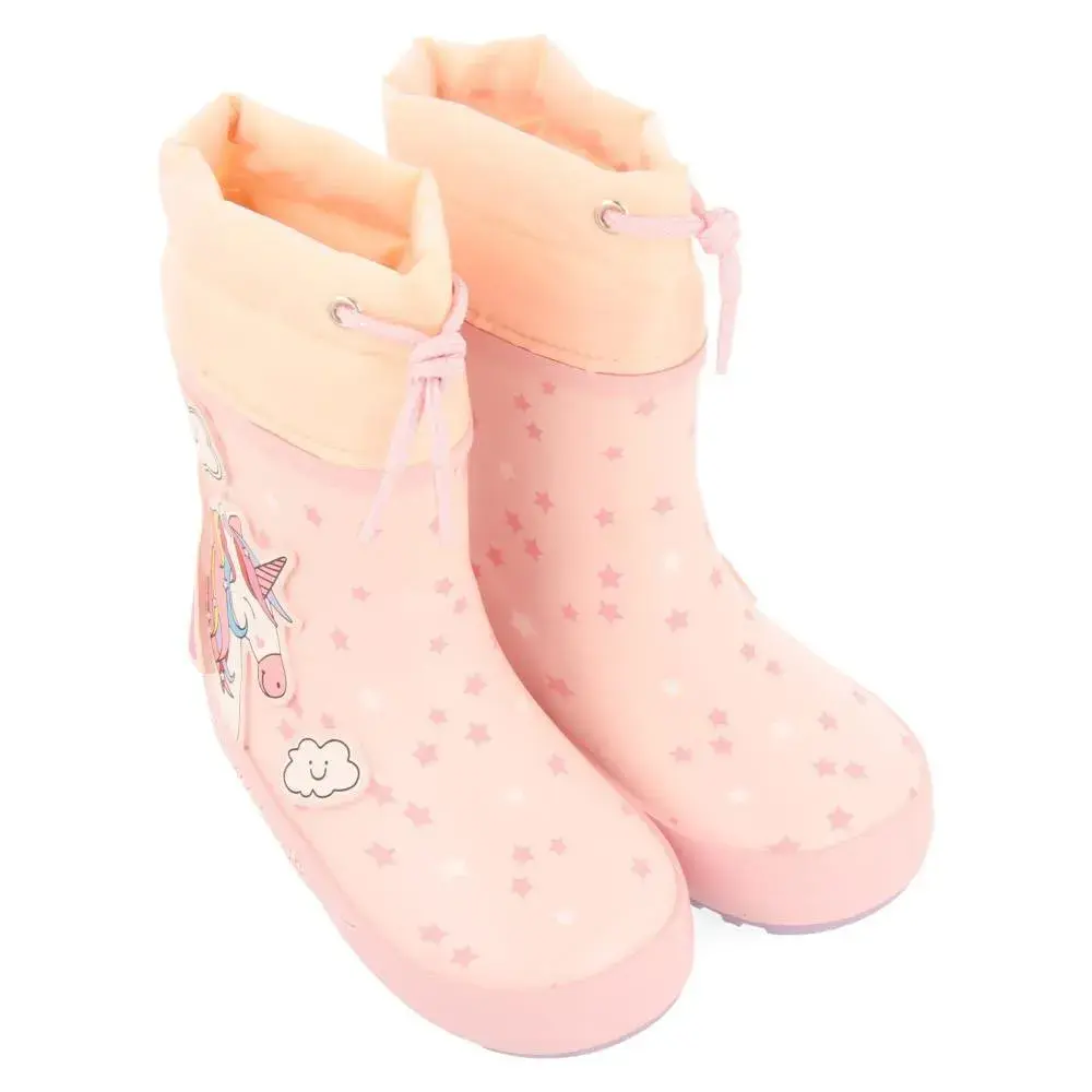 Настоящая фантазия! Розовые резиновые сапоги с нашивками в виде единорогов.
