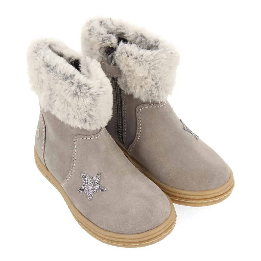 Холод не помешает вам щеголять стильно! Серые замшевые ботильоны с блестками и мехом.