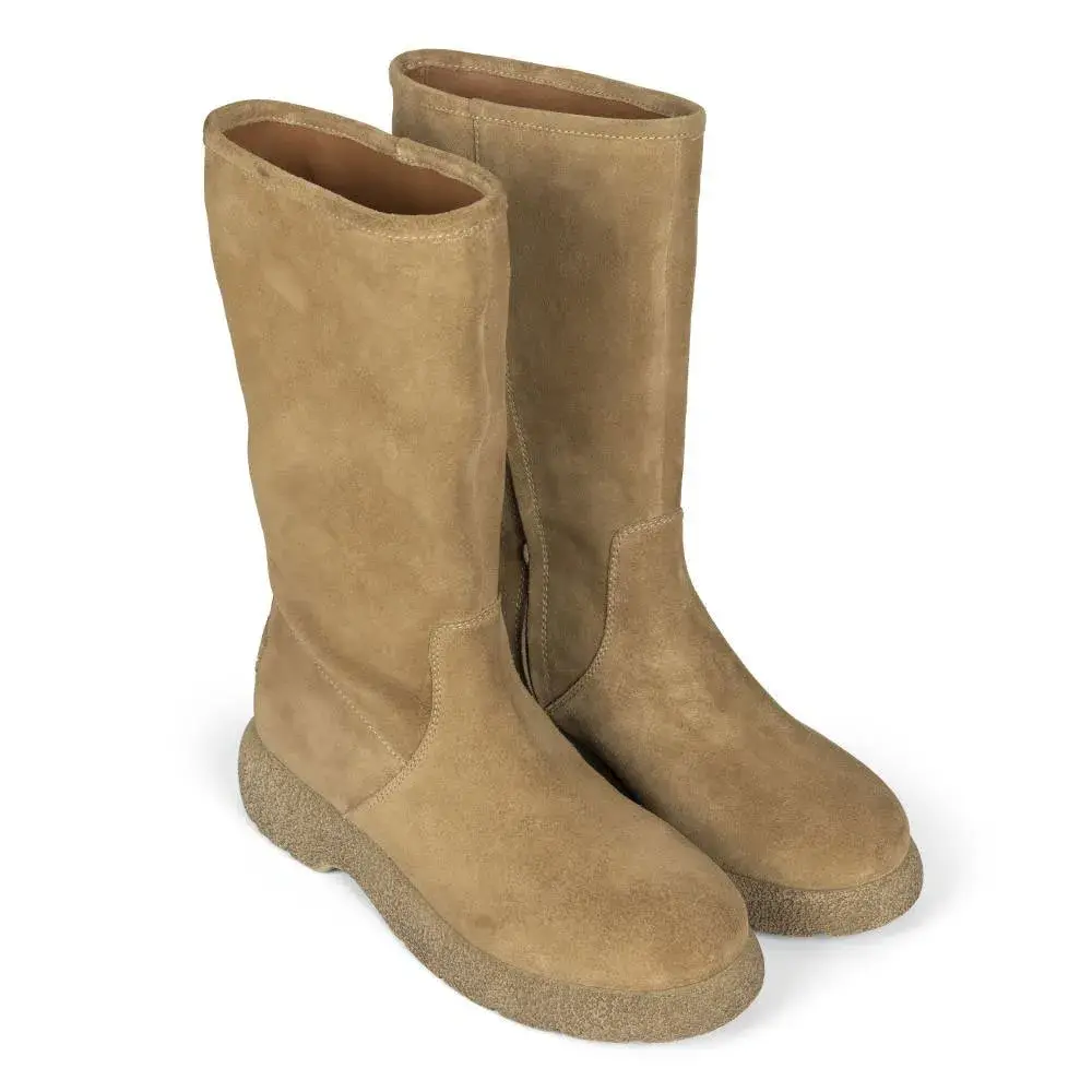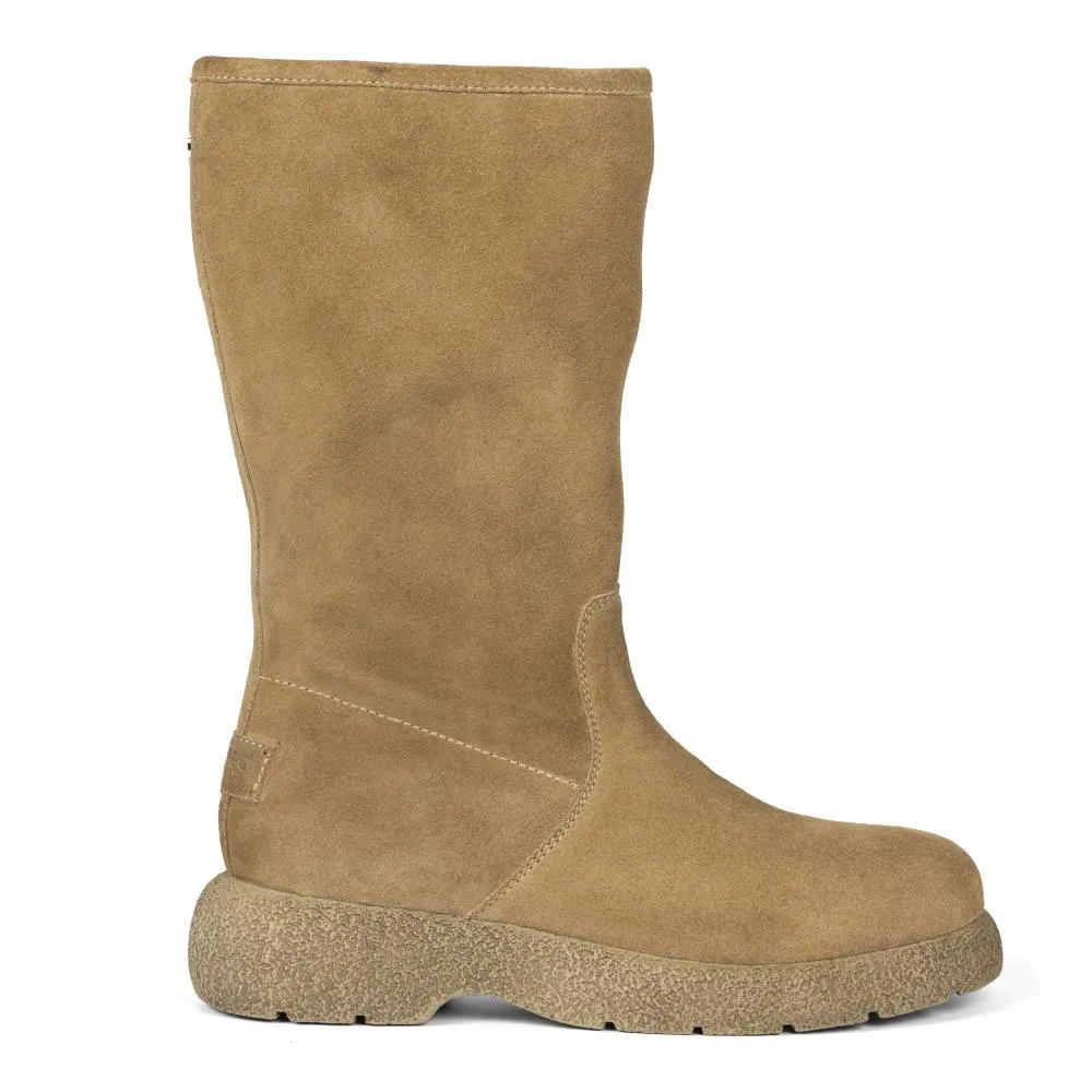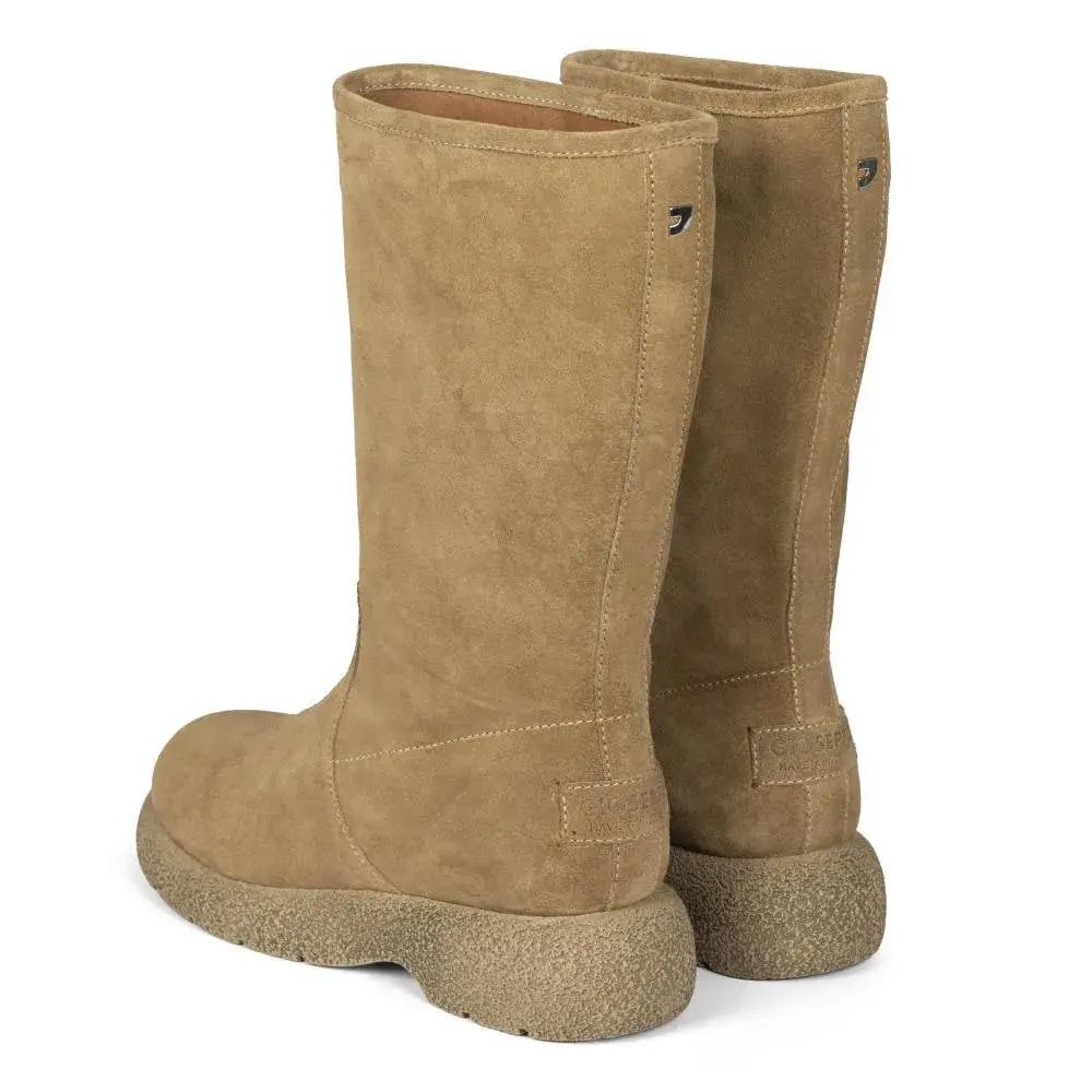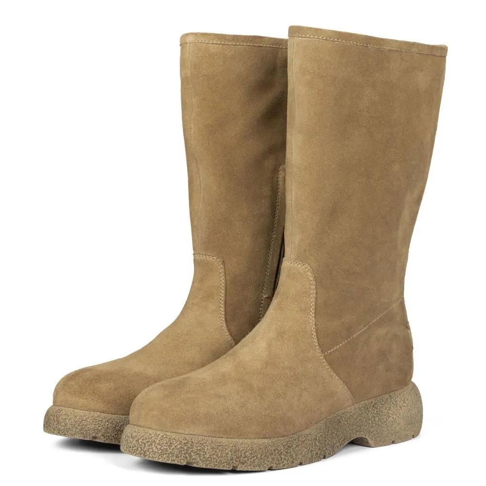 Многофункциональные замшевые ботинки серо-коричневого цвета с меховой подкладкой.