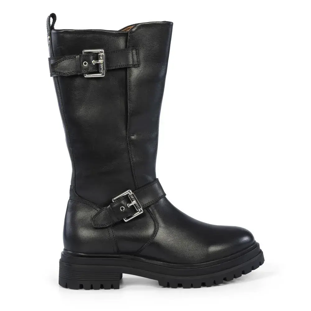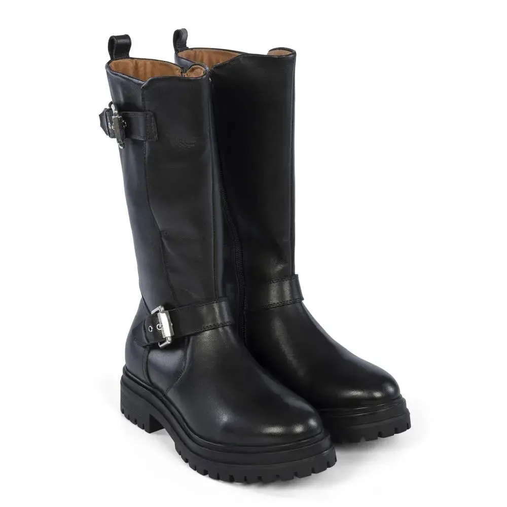 Черные кожаные ботинки в байкерском стиле с пряжками и рифленой подошвой.