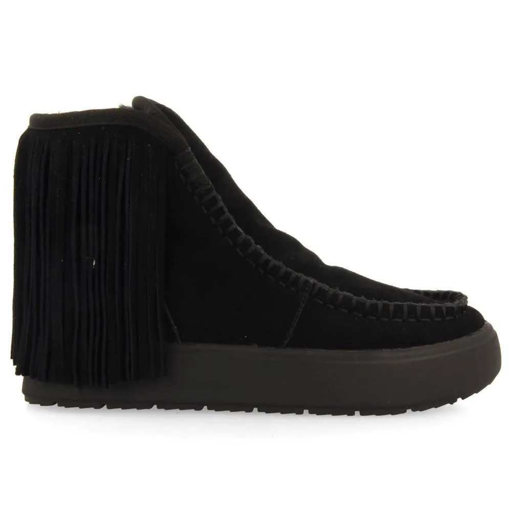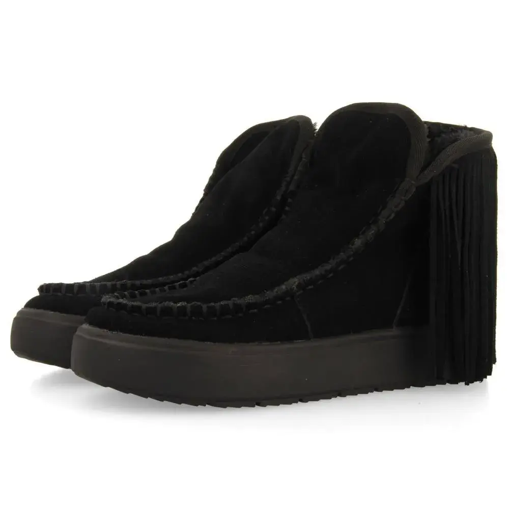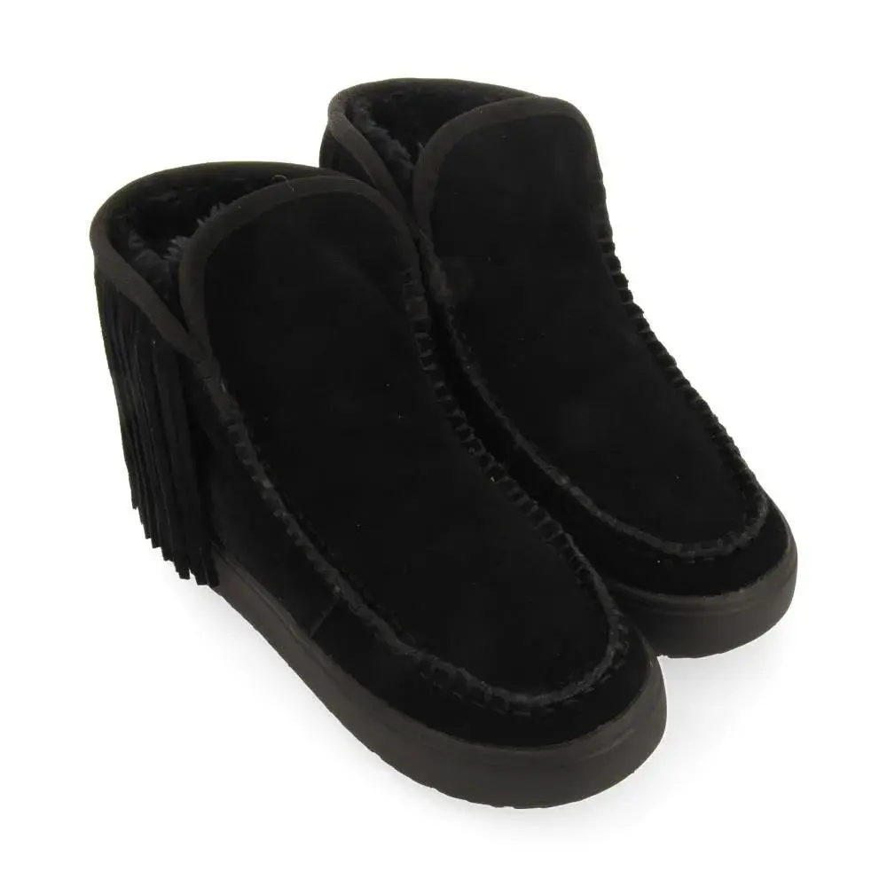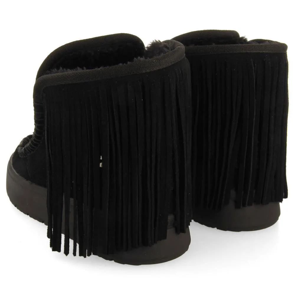 Черные кожаные ботинки в австралийском стиле с бахромой и внутренней меховой подкладкой.
