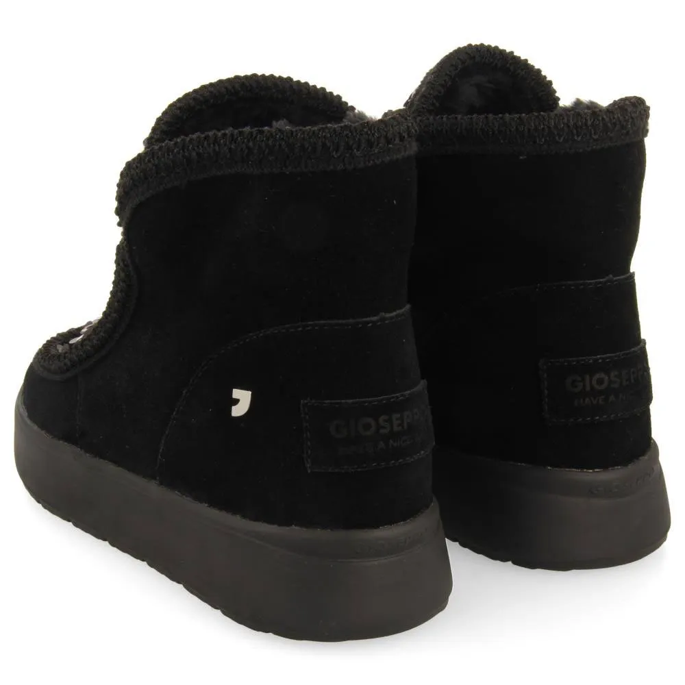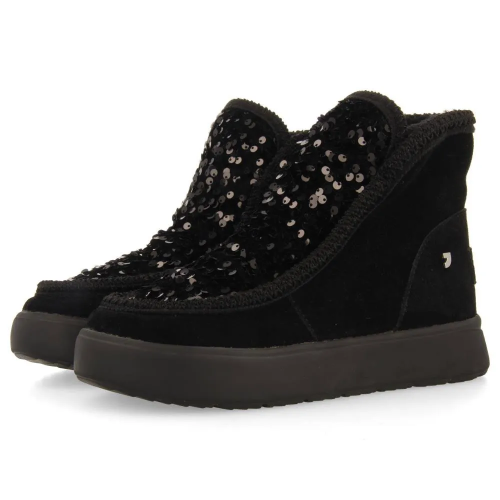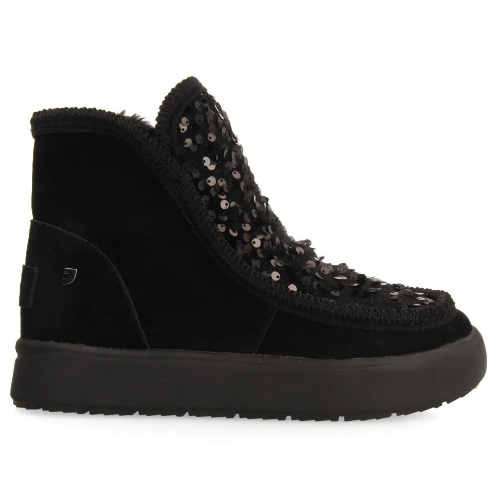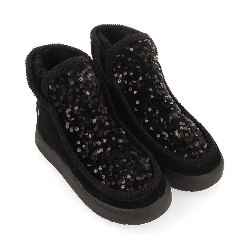 Черные кожаные ботинки в австралийском стиле с пайетками и меховой подкладкой.