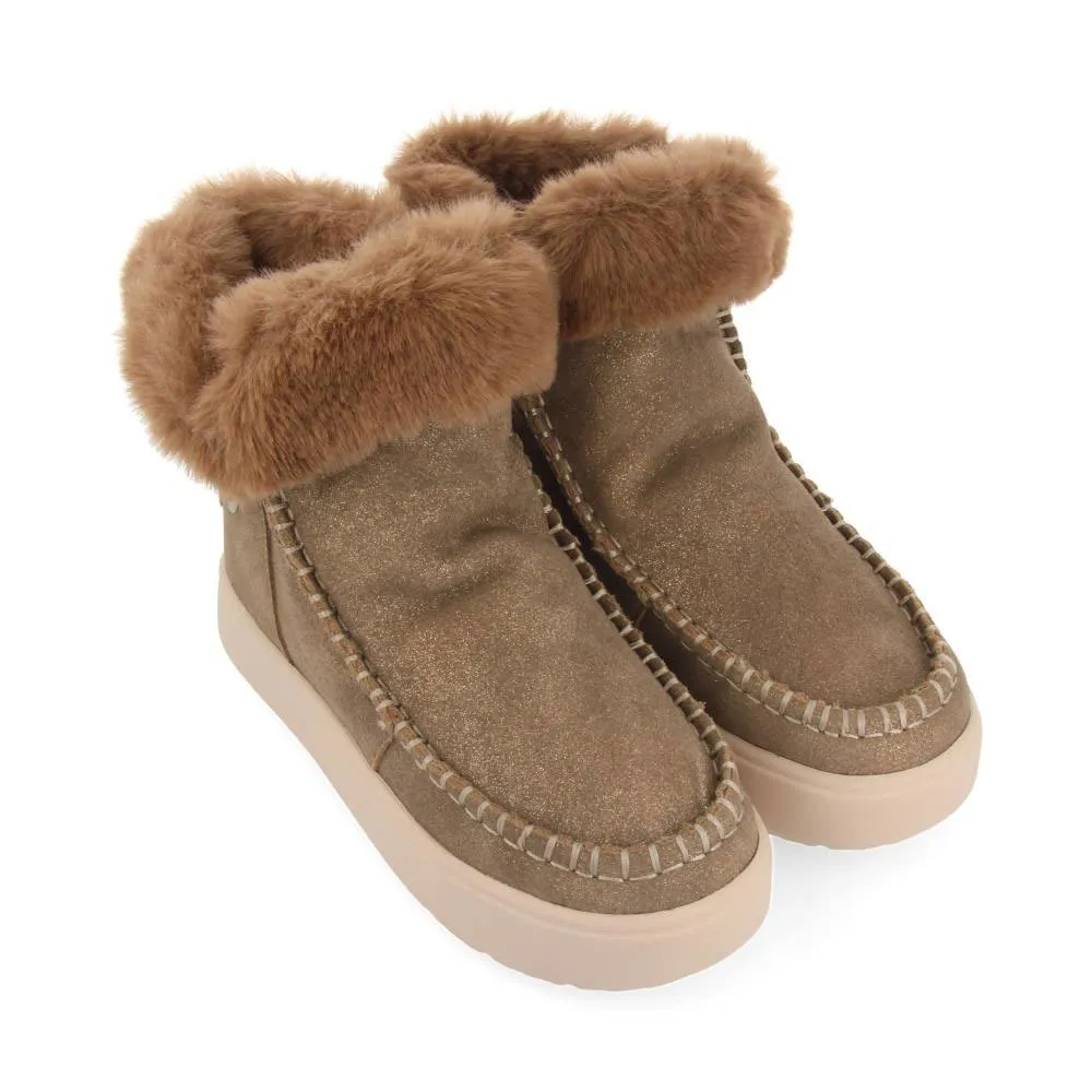 Кожаные ботинки в австралийском стиле серо-коричневого цвета с блеском и меховой подкладкой.
