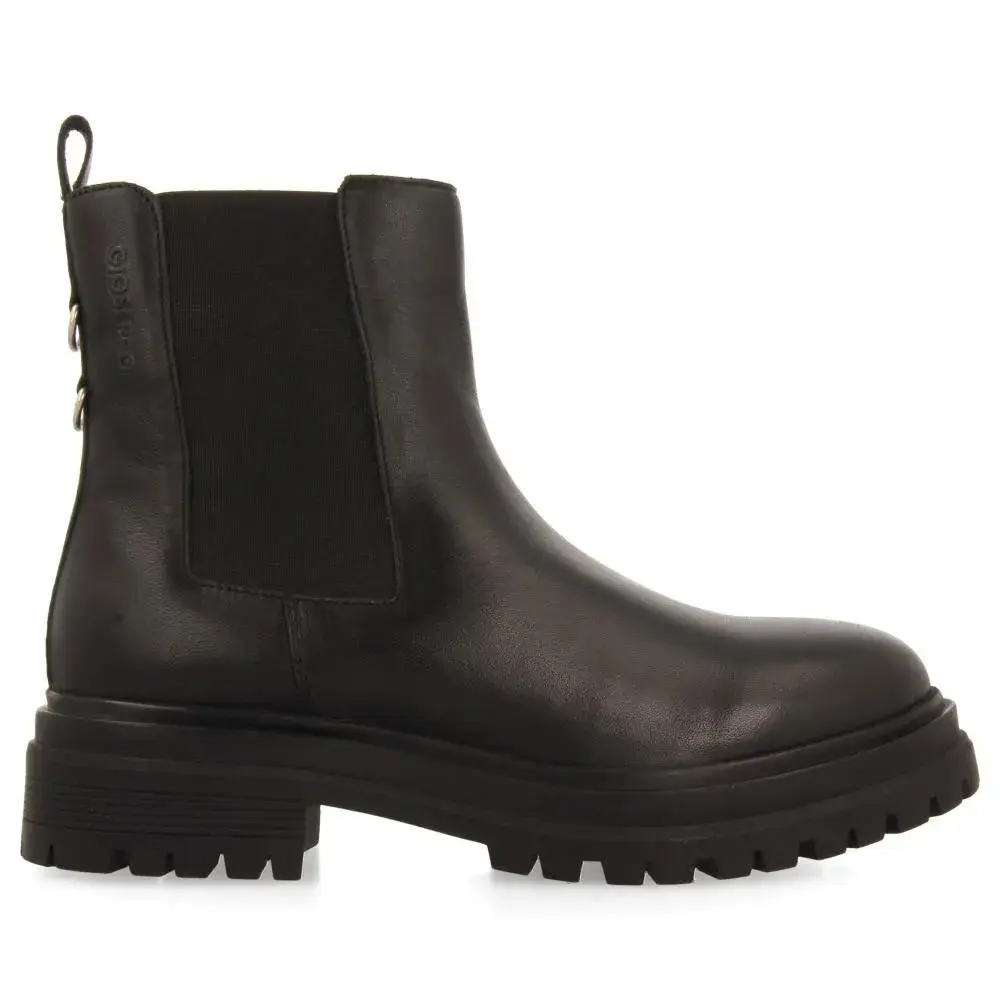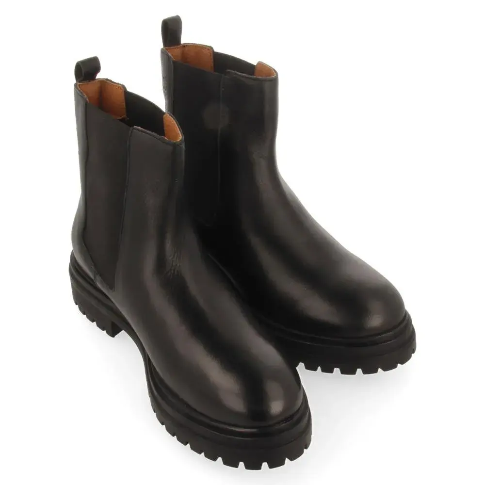 Черные кожаные ботильоны с толстой подошвой в стиле треккинга.
