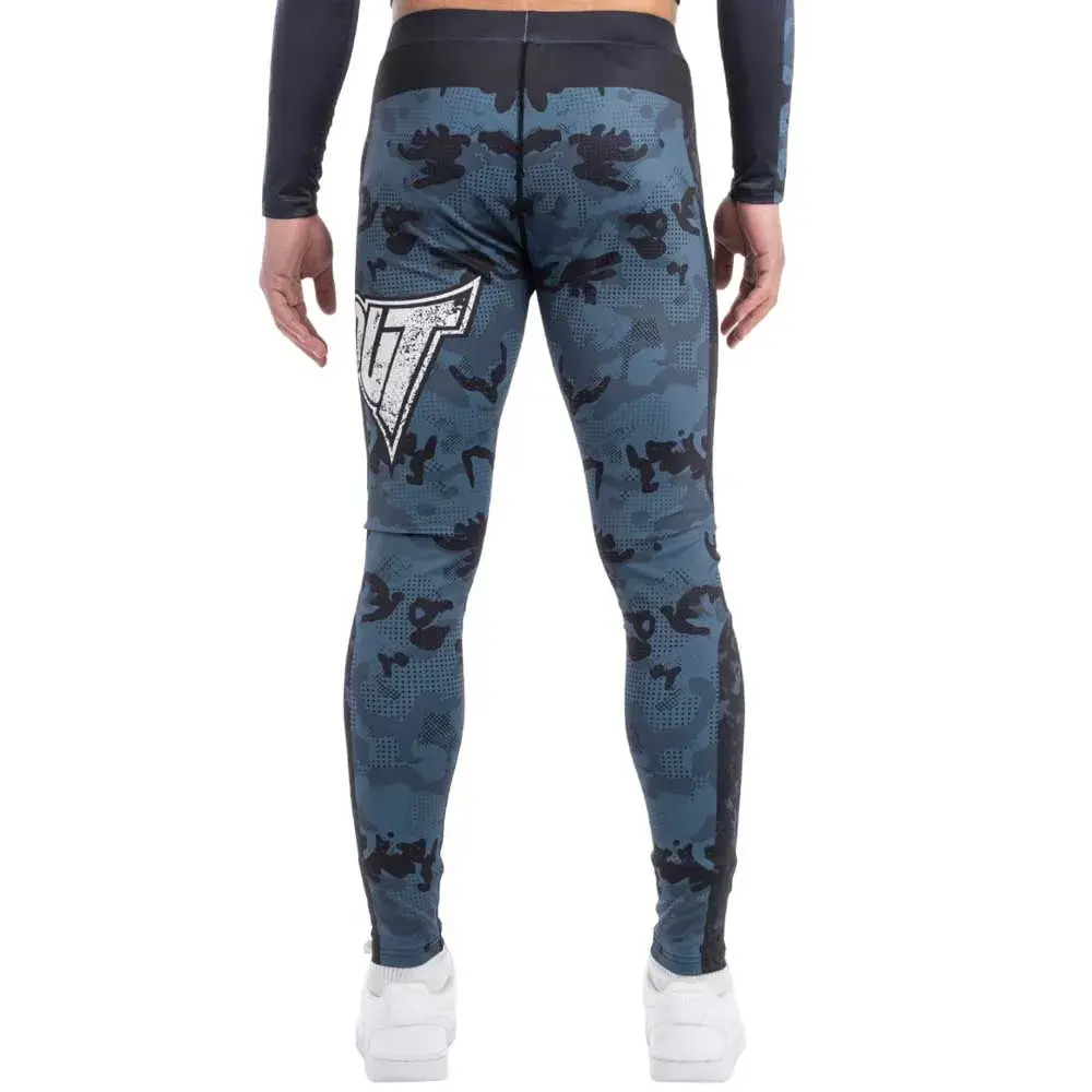 Мужские функциональные леггинсы облегающего кроя. Функциональные леггинсы в камуфляжном стиле с большим логотипом Tapout, расположенным в верхней части левой штанины.